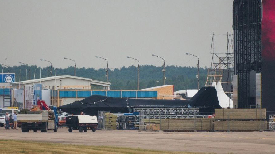 The fighter, which appeared at Zhukovsky wrapped in a black covering, has now been photographed from additional angles, albeit with most details still obscured. However, a view from the rear shows a telltale outline of a single round engine exhaust nozzle. Although it’s not clear what type of engine is installed, mock-up or otherwise, this confirms many rumors that the fighter would indeed be a single-engine type.