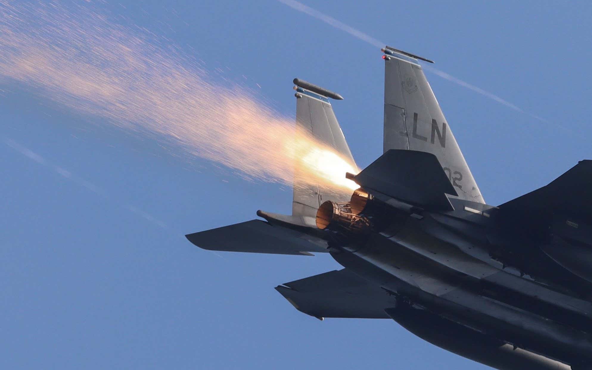 “From our perspective, it was a normal takeoff,” Thompson said. After getting the warning from Lakenheath, Thompson followed standard protocol and had his wingman approach close to the jet and take a close look at the engine nozzles, confirming the malfunction and prompting Thompson’s return to base.