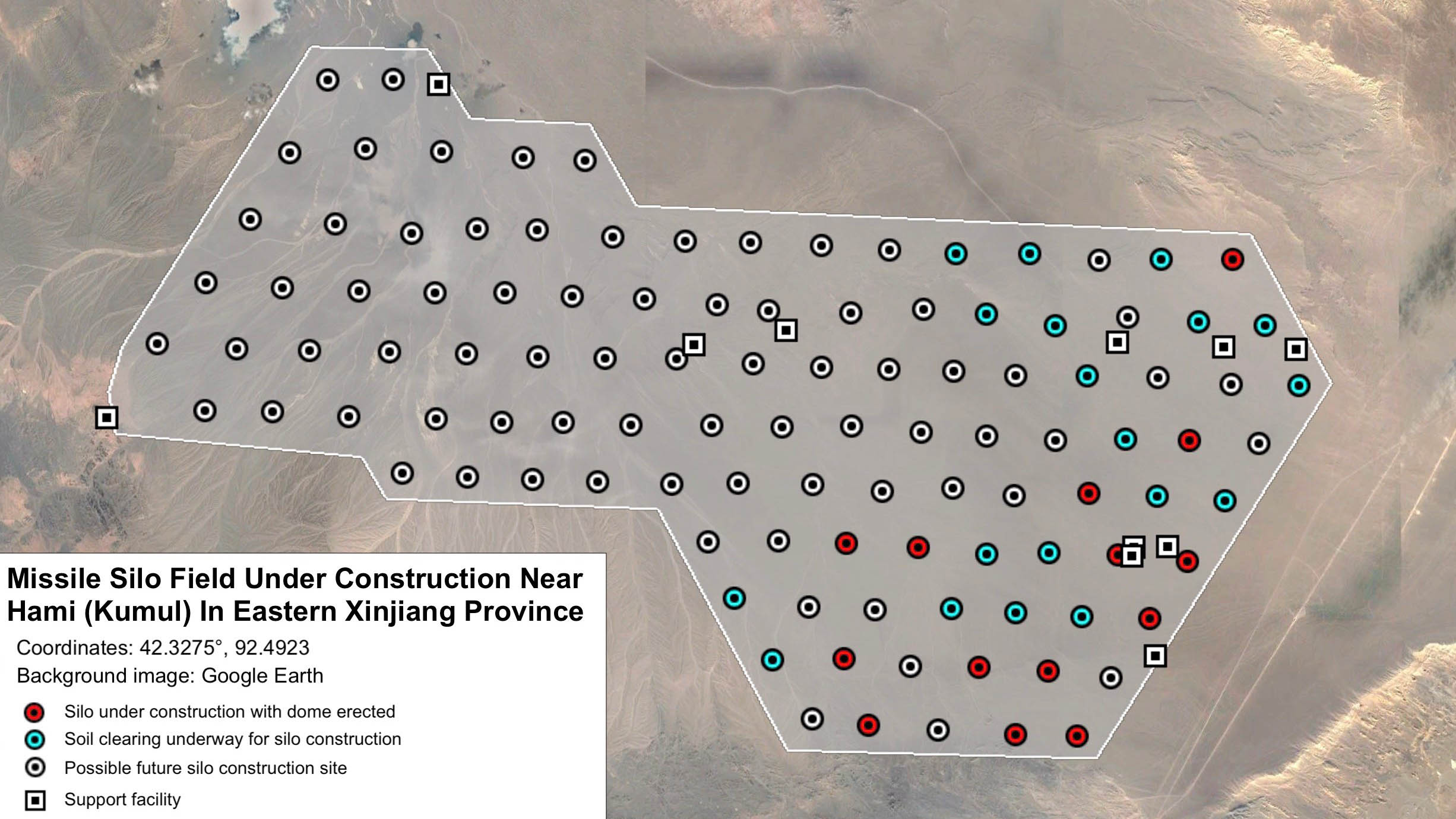 The new missile silo field near Hami is around 240 miles northwest of the one that was revealed earlier this month, near Yumen, in Gansu province.