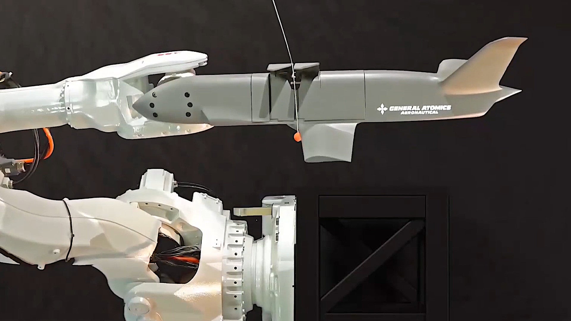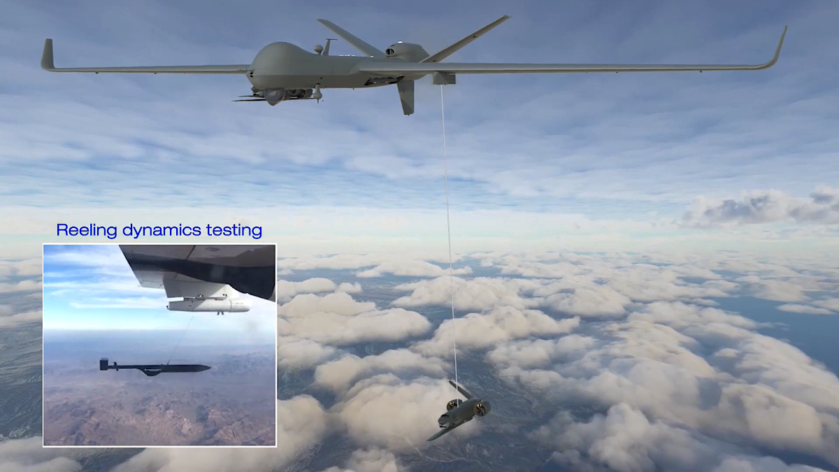 It is worth noting that the promotional video shows the line extending directly from an underwing pylon, but a clip of actual “reel dynamics testing” shows an aerodynamic model tethered to a pod that is then attached to the pylon. It’s not clear if GA-ASI expects the final Sparrowhawk design to be able to be deployed straight from a specialized pylon or use some sort of podded arrangement similar to the one seen in the testing. The company had previously released a picture of captive carrying testing showing a test article attached directly to a pylon under the wing of an MQ-9.