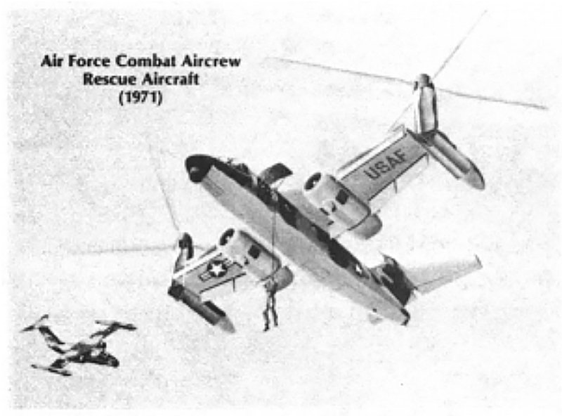At that time, the Vietnam War exposed a very real requirement for a more survivable platform that would be able to take over the U.S. Air Force’s combat search and rescue mission set, as well as other personnel recovery activities, from traditional helicopters. An HSVTOL design would be expected to fly into a potentially contested area at high speed, landing in a confined space or hovering over the jungle to pluck a downed airman from out of harm’s way. Other missions at the time called for a similar type of capability, including retrieving Apollo command modules on behalf of NASA, another job that fell to conventional rotorcraft.