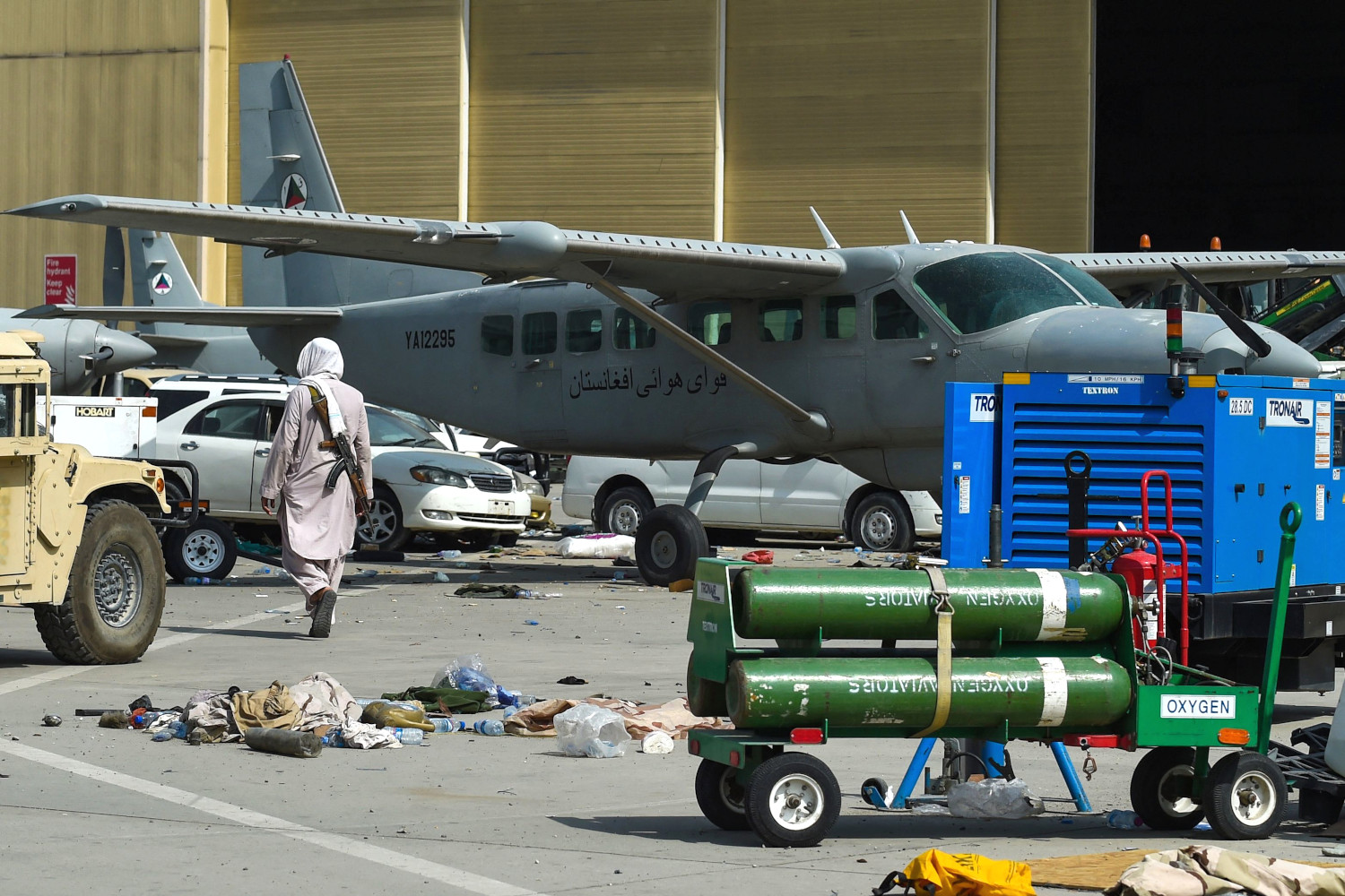 Independent open-source researchers Stijn Mitzer and Joost Oliemans, who run the blog Oryx, have been tracking how many former Afghan military aircraft have fallen into Taliban hands for weeks now. They say they have been able to identify at least 48 individual aircraft, 16 fixed-wing planes and 32 helicopters, in the imagery that has emerged from the airport in Kabul so far.