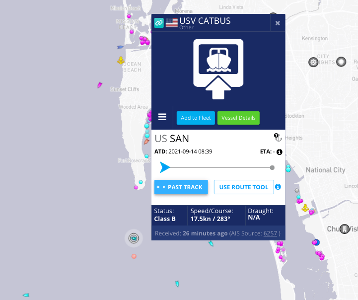 It’s also worth noting that Marinetraffic.com places Catbus at the Port of Melville about 18 days before appearing in San Diego. Melville is near Portsmouth, Rhode Island. Also located very close by is the Naval Undersea Warfare Center Newport, which is currently involved with a large number of unmanned naval initiatives, including those with the port security mission set.