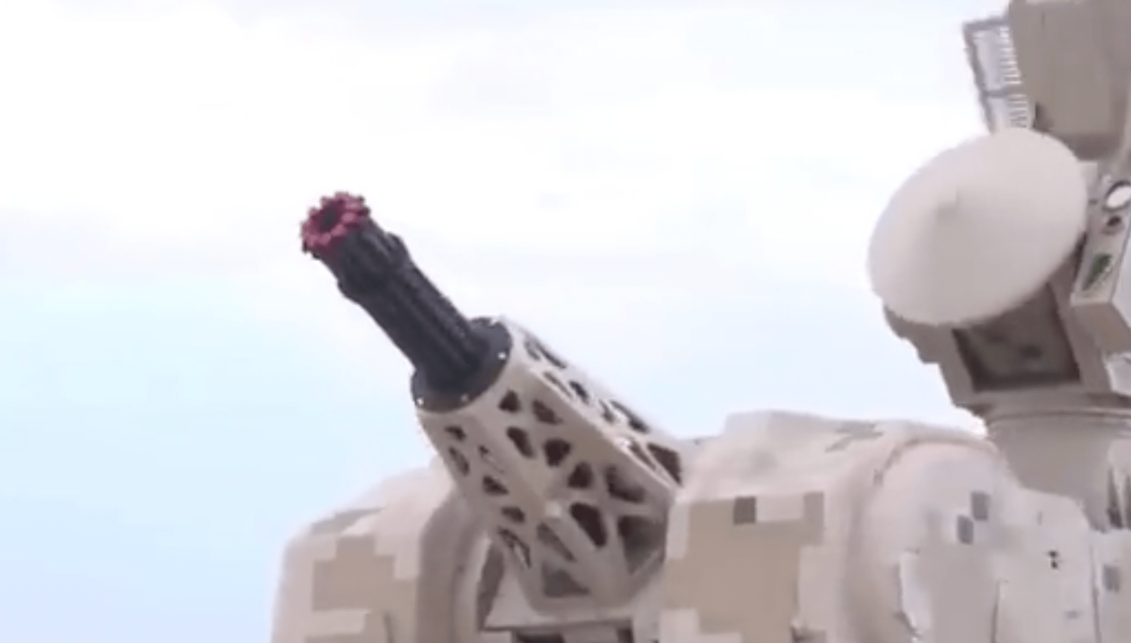 The new ground-based system, the designation of which is not currently known, has been developed from the Type 1130 shipborne anti-aircraft artillery mounting, itself apparently inspired by the Dutch Goalkeeper close-in weapon system (CIWS, pronounced “sea-whizz”), which uses the same size ammunition as the A-10 Warthog’s GAU-8 Avenger cannon. The Type 1130 is one of several types of gun-based naval CIWS developed by China. Others include the smaller Type 730 that features a seven-barrel 30mm cannon as well as an enormous 20-barrel weapon that appeared earlier this year and which is apparently still in the developmental phase.