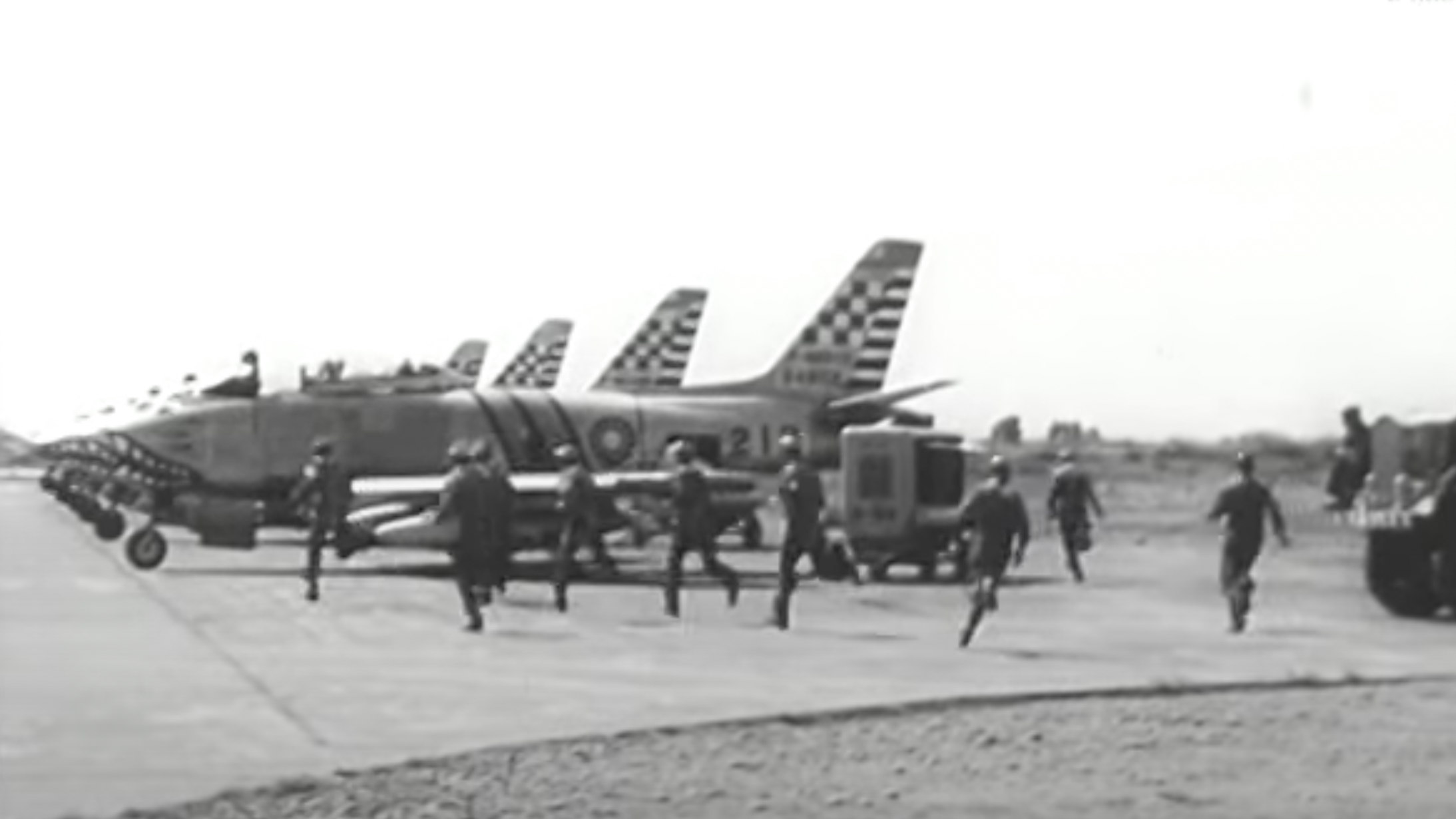 Update, September 29: Twitter user @alert5 has provided additional details about the combat of September 24, 1958, based on a Chinese-language report. This puts the location of the first Sidewinder shoot-down as Wenzhou Bay, PRC, rather than over Quemoy, a distance of around 120 miles away. The four F-86Fs had been flying top cover for an RF-84F reconnaissance jet. A gun-camera image of the action shows the missile streaking away from the F-86 before engaging the MiG-17, the contrails of which can be seen. The same account puts the number of MiG kills that day at nine, not 10, although only four fell to the new missiles, six of which were fired.