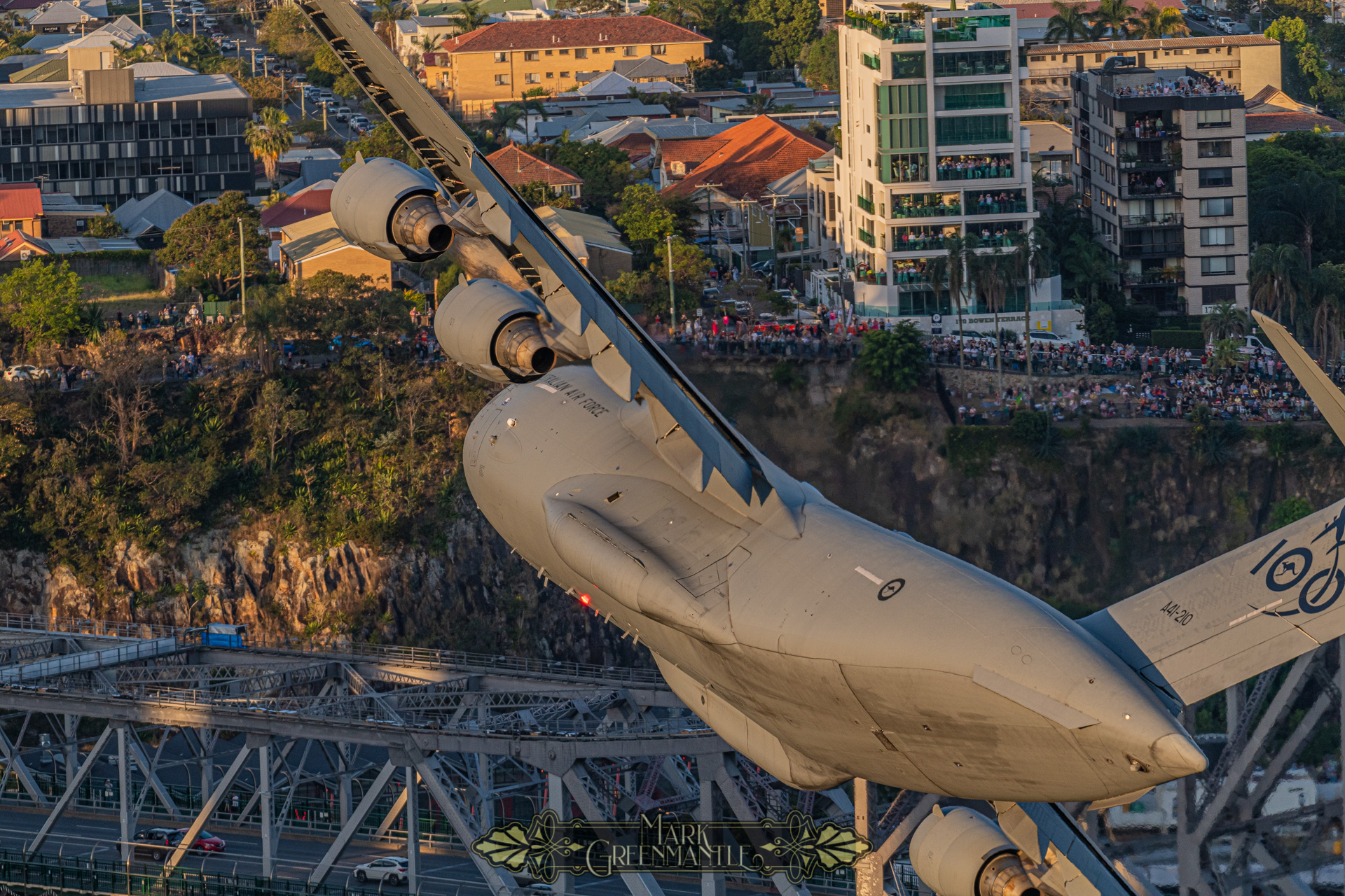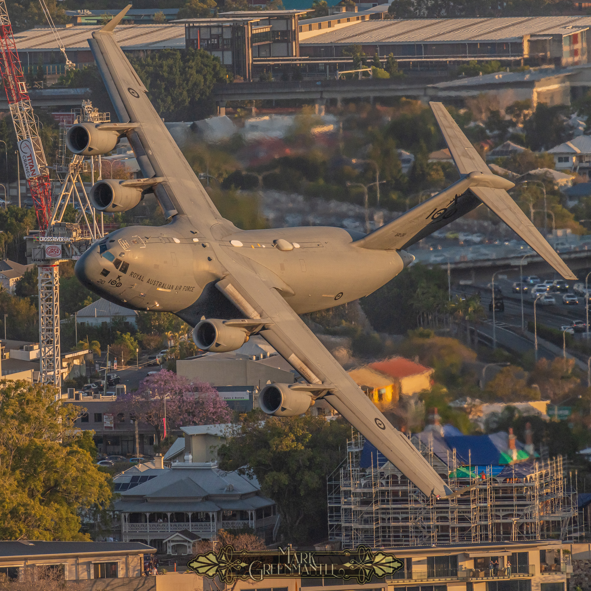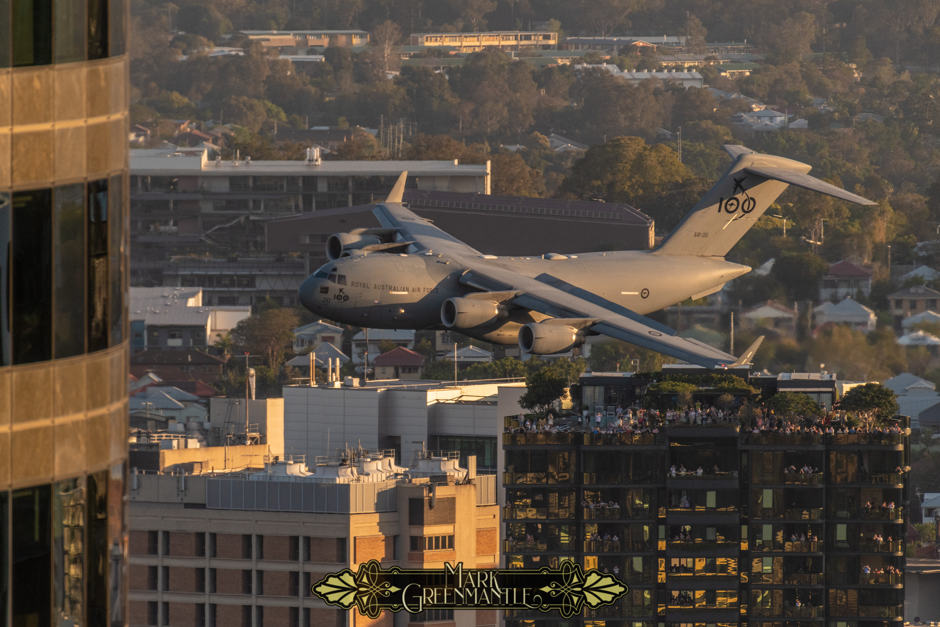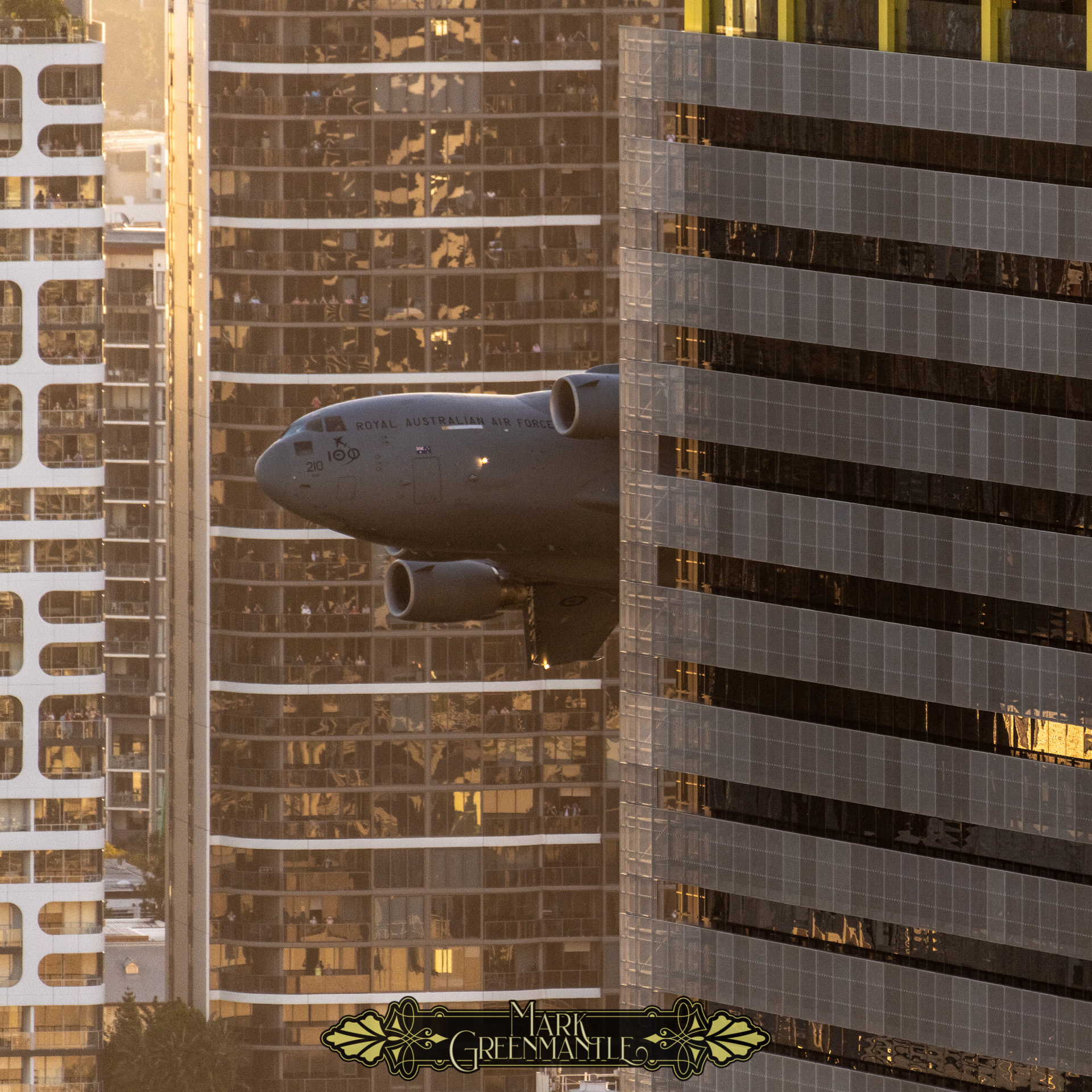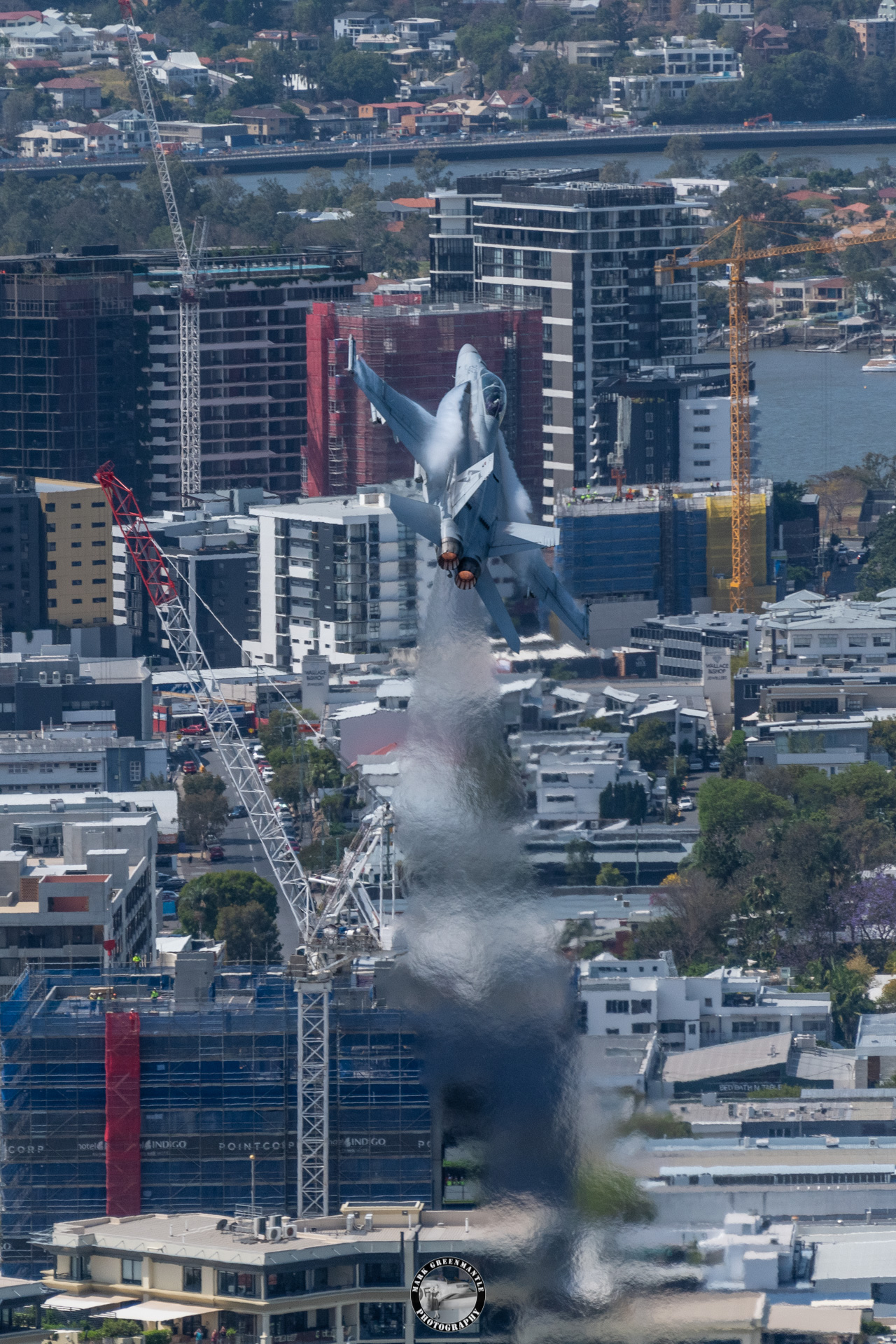 To achieve these images, I have found an ideal perch upon the railing of the 39th floor of Riparian Plaza in Brisbane. For two years pre-COVID, I have hosted the RAAF media teams with me to ensure they can make the most of this vantage point.