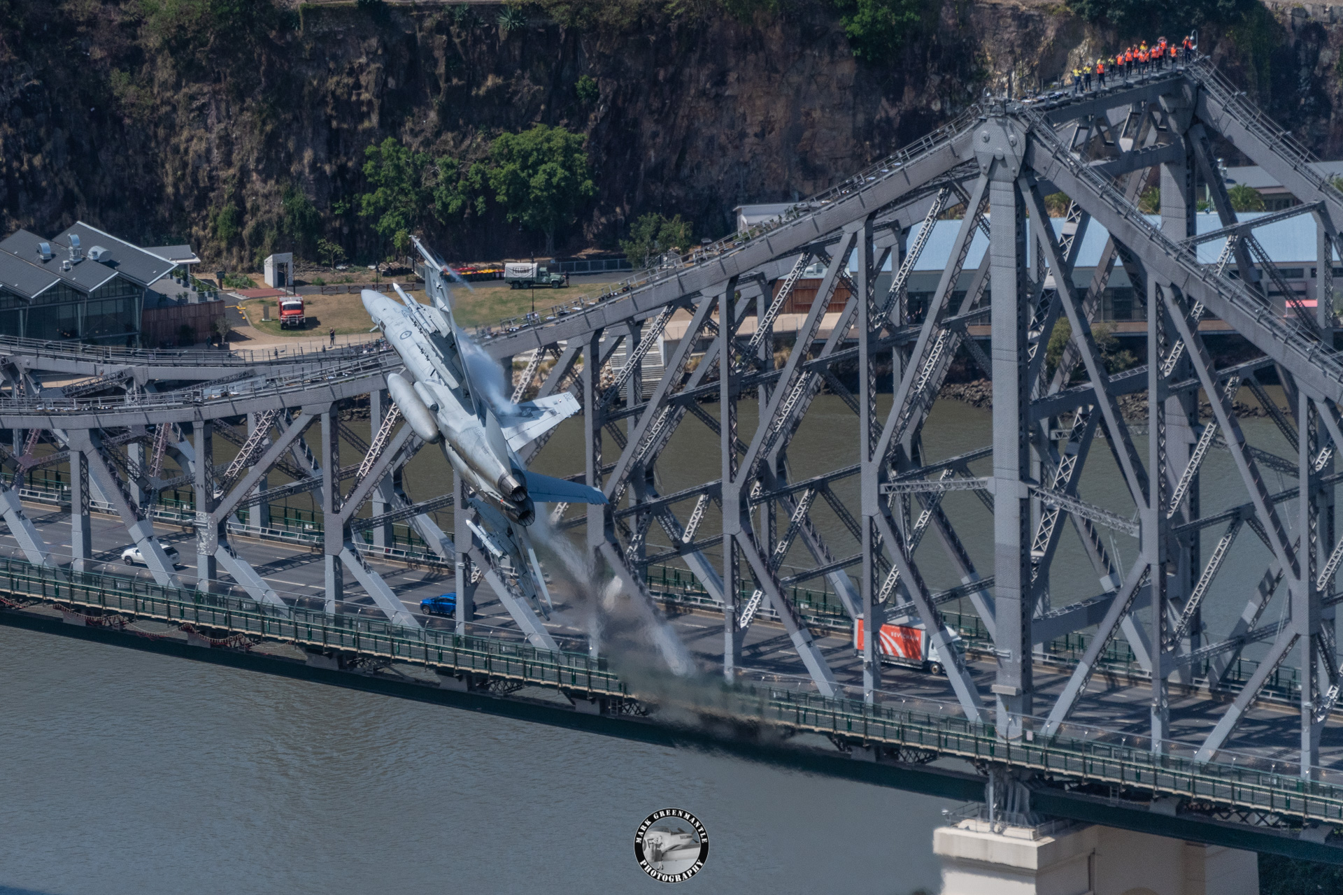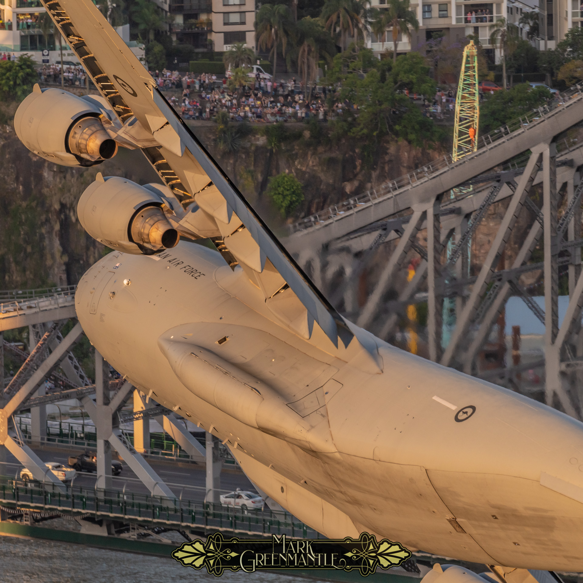 The general flight path of the display was known from previous years and had only been slightly altered for 2021. What was known for certain was that the pilots from RAAF Amberley Base had flown many hours in the simulator to prepare for the low-level passes (250-300ft above ground level) over the river and bridges. Despite many publications pushing alarmist rhetoric about “dangerous display flights” being too much like 9/11… they hide that the aircraft have a very broad river below their low-level passes and that at no point is any building occupant at any risk of harm.