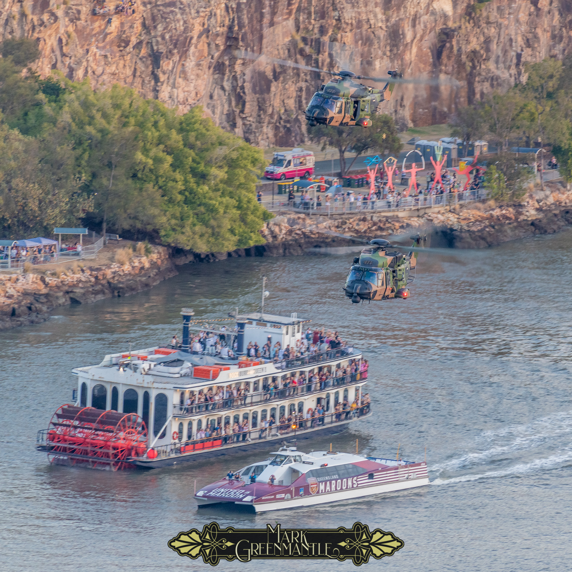 Previous years have included more passes by either 1Sqn RAAF’s F/A-18F Superhornets or 6Sqn’s EA-18G Growlers, as well as the 36Sqn Globemasters, and we’ve also enjoyed displays from Australian Army aviation corps with the MH-90 Taipans and the ARH Tigers buzzing the large number of boats crowding the river ahead of the fireworks displays.