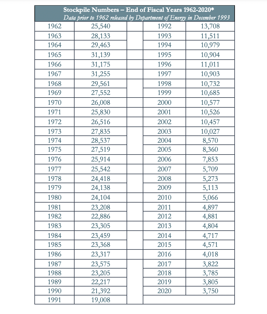 The revelations are among newly declassified details of nuclear weapons numbers in a recently published fact sheet from the U.S. Department of State with the title Transparency in the U.S. Nuclear Weapons Stockpile. This is the first time such data has been released since September 2017, after which the Trump administration took the decision to classify the information.