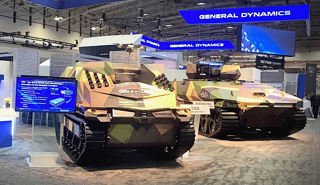 “TRX features innovative thinking, ranging from its AI [artifical intelligence]-enhanced design to advanced, lightweight materials and a hybrid-electric propulsion system,” according to GDLS’ website. “TRX is positioned to provide superior performance as an enabling technology in a myriad of critical battlefield roles, including direct and indirect fire, autonomous resupply, complex obstacle breaching, counter-unmanned aerial systems (C-UAS), electronic warfare (EW), reconnaissance, and other battlefield missions.”