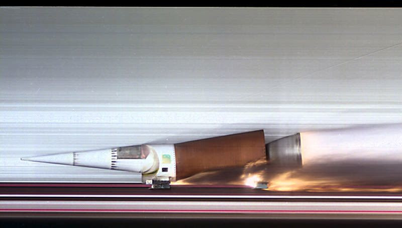“Currently, recovered high-speed – those of Mach 3 or more – and rain erosion tests are limited to one of the 10-mile-long rails in a monorail configuration,” according to an official Air Force news item published earlier this month. “The monorail configuration limits the size of test articles to small, light test articles, or coupons, due to roll stability issues at high velocities.”