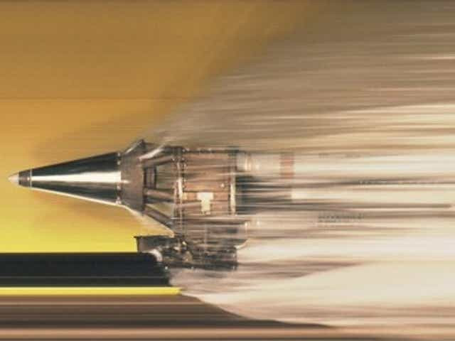 The Air Force continued to utilize the track, and expand its capabilities, in the following decades. In 1982, another rocket sled, with a 25-pound payload instead of a person, set a new land speed record for an uncrewed platform. The unspecified test article hit a peak speed of 6,119 miles per hour. For comparison, the current land speed record for a vehicle with a person in it, set by Andy Green in 1997 using a jet-powered “car” called ThrustSSC, sits at just over 763 miles per hour.