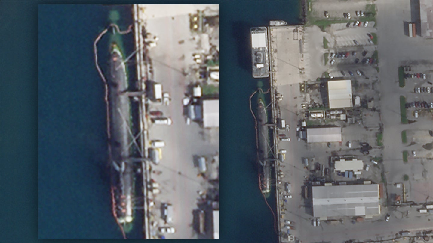 One of the Navy’s prized Seawolf class nuclear fast-attack submarines, the USS Connecticut (SSN-22), slammed into a “submerged object” on Oct. 2, 2021. After it was clear that the submarine was stable and its reactor was safe to operate, it limped from the South China Sea, where the collision reportedly occurred, back to the sprawling U.S. naval facility in Guam, where the damage would be assessed and the accident investigated. The Navy has remained very tight-lipped about what it thinks Connecticut collided with, or if it has any idea what it was at all. You can read about some of the possibilities here. As of today, no pictures of the stricken submarine have surfaced, which is somewhat remarkable, although there have been plenty of misrepresented images floating around social media that claim to show the damage. Now, The War Zone has obtained satellite imagery that shows Connecticut tied up to the pier in Guam — the first public image of the submarine since the incident.