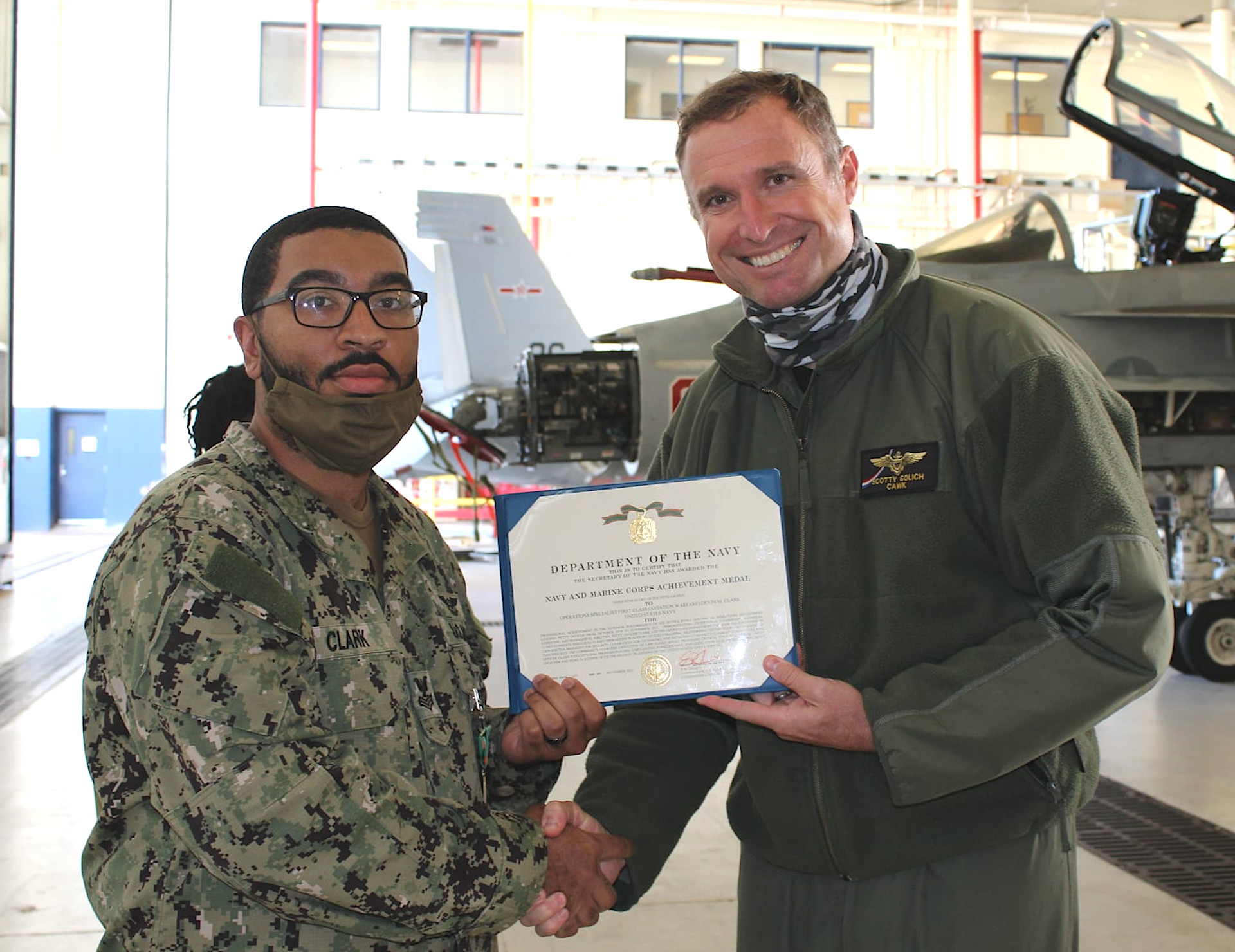 The picture in question, which has no caption, appeared on VFC-12’s official Facebook page yesterday and is one of a series that shows the unit’s senior leaders handing out various awards and commendations. A public affairs officer for the unit told The War Zone that the aircraft in question is an otherwise “vanilla” F/A-18, but it’s not clear if it is one of the squadron’s F/A-18E/Fs or an older “legacy” Hornet.