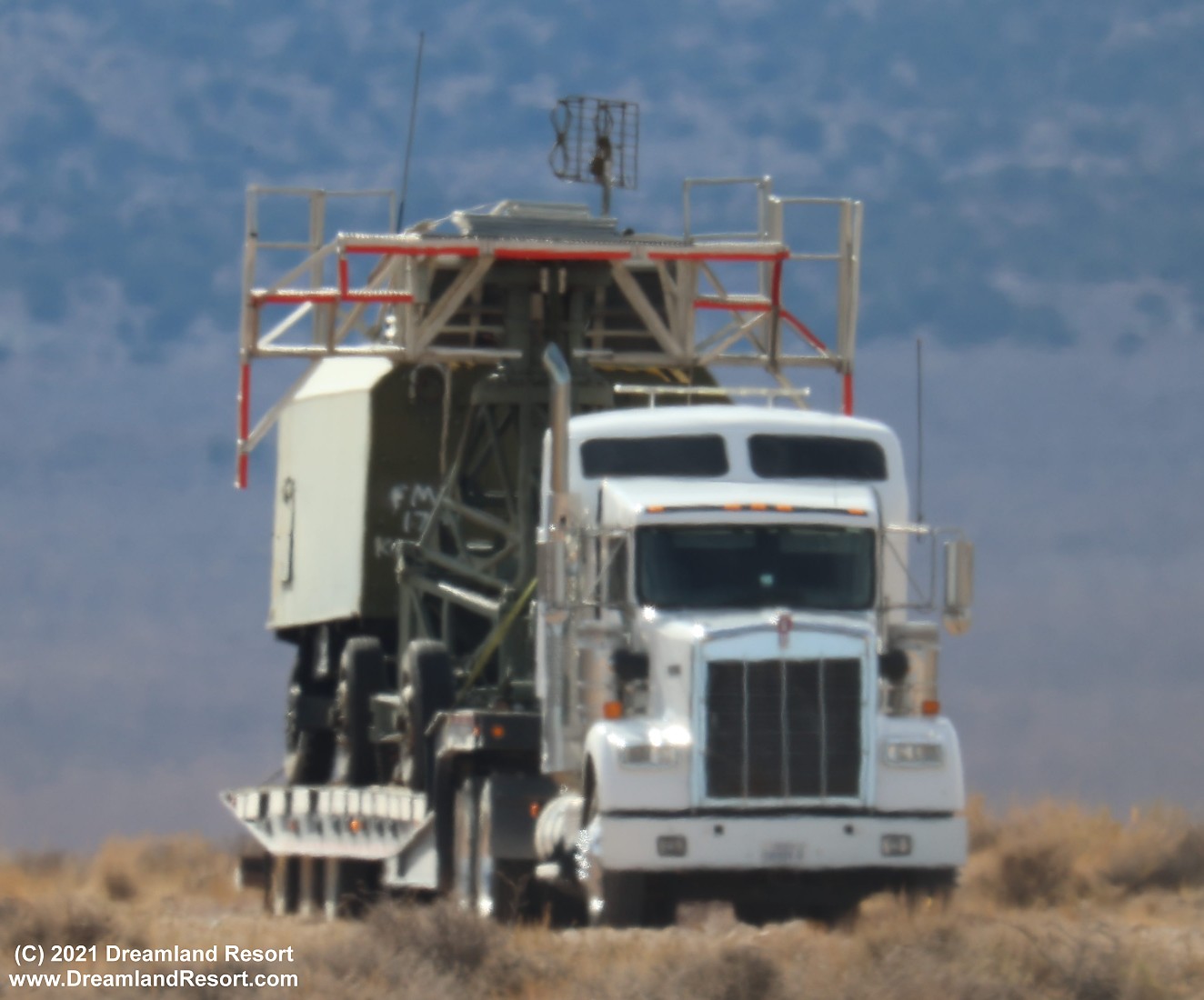 While Arnu and his associate were watching the RQ-180, a truck hauling an apparent Soviet-era Spoon Rest air-defense early-warning radar emerged from one of the Groom gates and apparently waited at a distance for the pair to leave. While it is unlikely that the radar’s movement was in any way related, it’s interesting, at least, that this activity was taking place at the same time, especially on a Saturday, when the ranges are traditionally quieter. All types of foreign threat sensors and air defense systems are used for development and training purposes out at the NTTR.