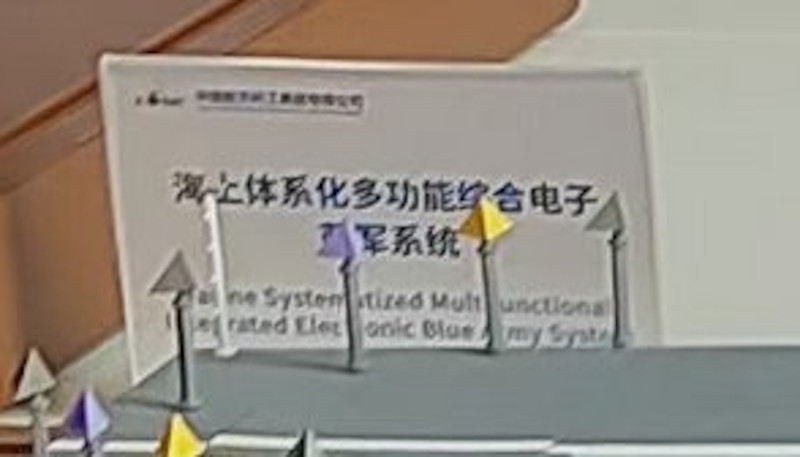 There was a small sign next to the model at Zhuhai with descriptions of the ship in Chinese and English. Available pictures of the sign do not provide a clear view of all of the English text, but part of it reads “Multifunctional Integrated Electronic Blue Army System.” In Chinese military parlance, mock opponents in training exercises are referred to as the “Blue Army.” This is in direct contrast to how the U.S. military and other western armed forces describe generic simulated enemies as the “Red Force.”