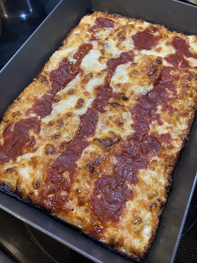 I added the pizza wheel to my personal wishlist, but it also got me thinking. What’s the point of a pizza cutter if you don’t have pizza to cut? Okay, fine, you can also cut pastry dough, pie crusts, and other such things, but work with me! Half of all Americans seemed to take up some form of bread-making during quarantine, and at least half of them also tried their hands at pizza. My personal favorite style (something I started working on in 2019) is Detroit Style pizza.