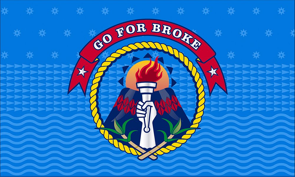 - The 442nd’s torch and “GO FOR BROKE“ motto from preliminary concepts were kept as central elements in the seal.
