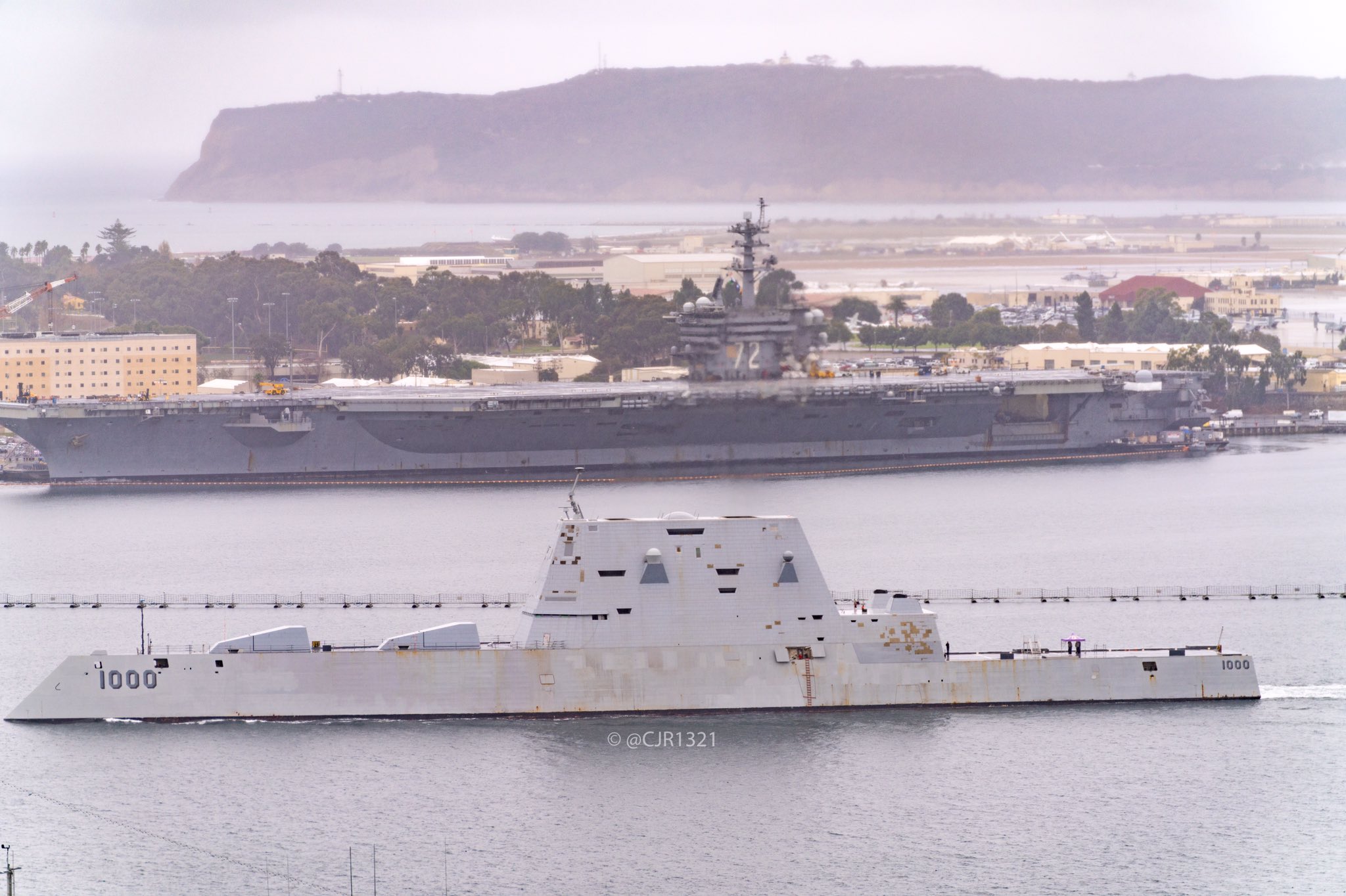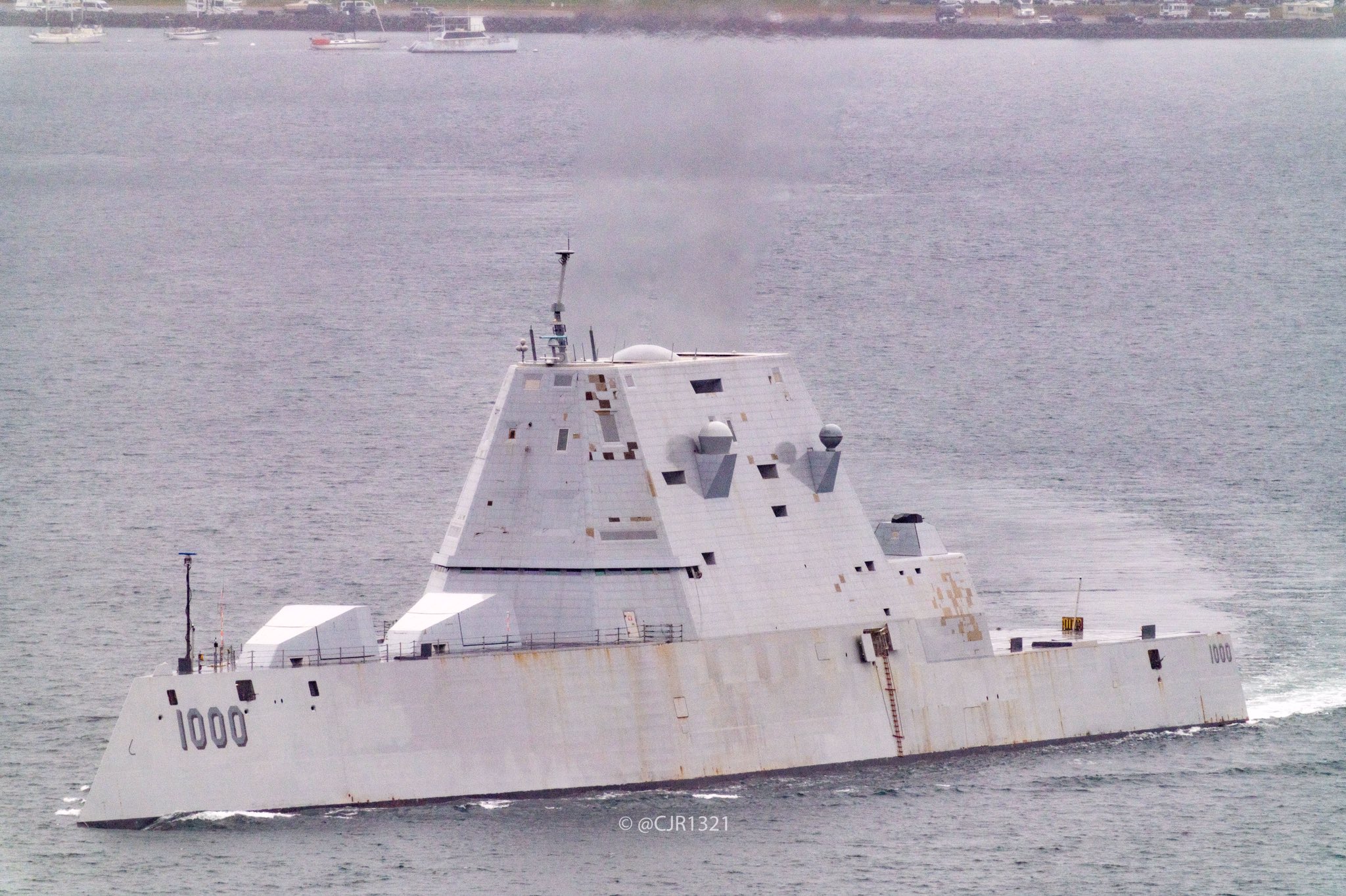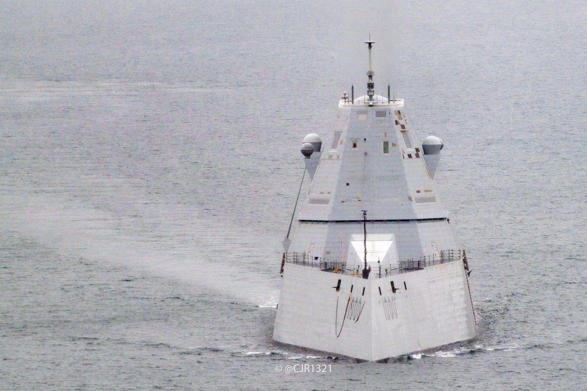 The Navy’s first of just three DDG-1000 destroyers, USS Zumwalt, continues its testing and training work off Southern California. The ship, which was commissioned five years ago, has been coming and going from San Diego Bay regularly for years now. The second ship in this small class of highly advanced warships, USS Michael Mansoor (DDG-1001), has also joined Zumwalt in San Diego for its own outfitting and trials. It is hoped that Zumwalt will be able to deploy in the not-so-distant future, but the futuristic warship looked less than gleaming recently, with some of its radar-absorbent tiles deeply discolored and rust streaking down its convex tumblehome hull.