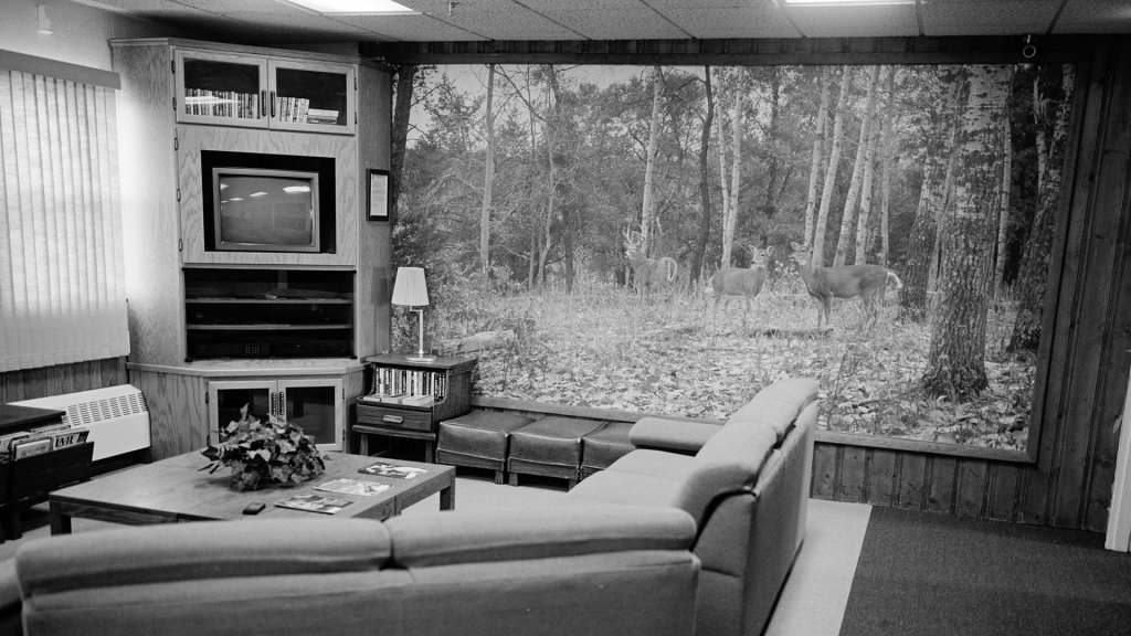 An underground former nuclear missile launch control facility officer’s quarters displays a mural of deer on August 26, 2011 in South Dakota. Located in the rural farmland of the South Dakota plains, the bunker is now a national historical site open to visitors. Put out of service after treaties with the former Soviet Union, the missiles controlled by this room were probably capable of destroying the planet. (Photo by Andrew Lichtenstein/Corbis via Getty Images)