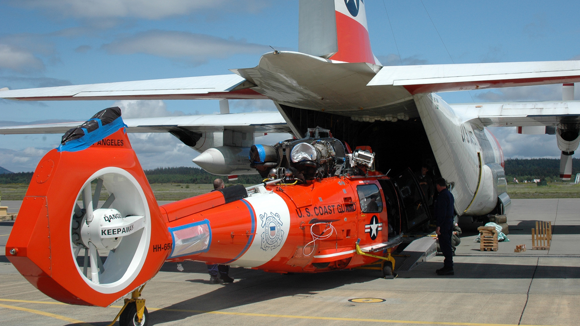 It turns out that, while loading an MH-65 onto a C-130 is not an everyday occurrence, it’s far from unheard of. While MH-65s do self-deploy around the U.S., given the type’s range, moving one from one Coast Guard station to another inside a C-130 can be the fastest, most efficient plan, but it can also be an absolutely essential one, too. For example, the HH-65 seen below was transferred from Whidbey Island to Hawaii in 2008, when the Port Angeles, Washington station received then-upgraded MH-65s.