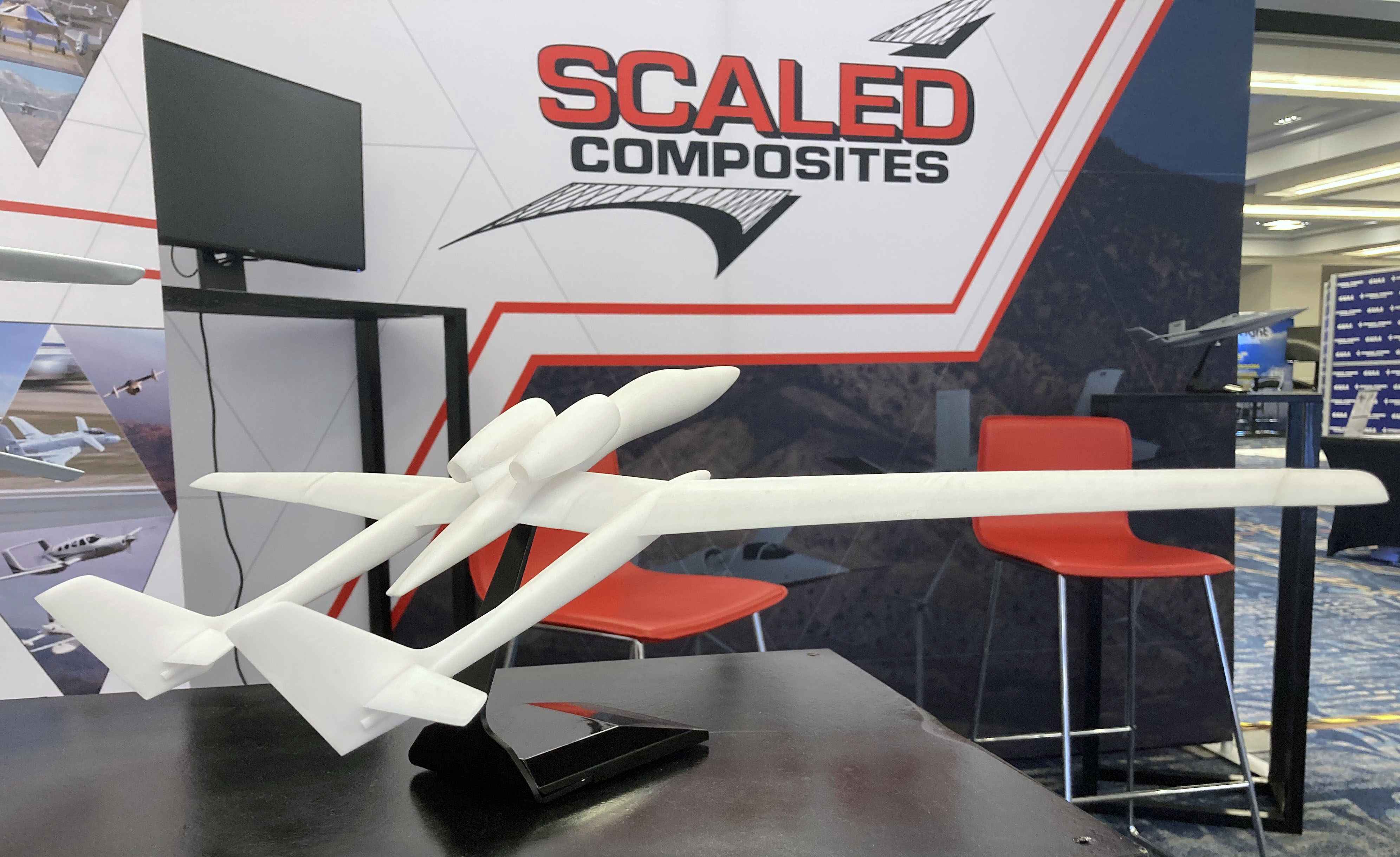 The public’s first look at the Encore was provided by a desktop model shown on the Scaled Composites booth at the AIAA SciTech Forum and Exposition that’s currently taking place in San Diego, California, as well as online. The Encore is displayed next to a model of the same company’s one-off Proteus, a manned high-altitude test platform that has flown numerous experimental missions since its first flight in 1998. Since then, Mojave-based Scaled Composites has become a subsidiary of Northrop Grumman.