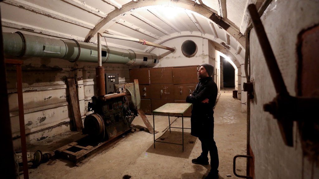 In this photograph taken on February 2, 2020, museum guide Besian Dida, stands in the ventilation room of The Cold War Tunnel Museum in Gjirokastra, Albania. Snaking beneath a fortress in southern Albania, a covert tunnel network built during the country’s communist era captures the secrecy and paranoia that defined the long rule of former tyrant Enver Hoxha. Today communism is gone and the military bunker is a tourist attraction, still drawing rare visitors during the pandemic, when themes of fear, isolation and confinement are particularly resonant. The sprawling underground complex, now dubbed the Cold War tunnel, is part of a vast and costly “bunkerisation” project spearheaded by Hoxha, who was gripped by anxiety of a possible foreign invasion during his 40-year isolationist rule. (Photo by Gent SHKULLAKU / AFP via Getty Images)