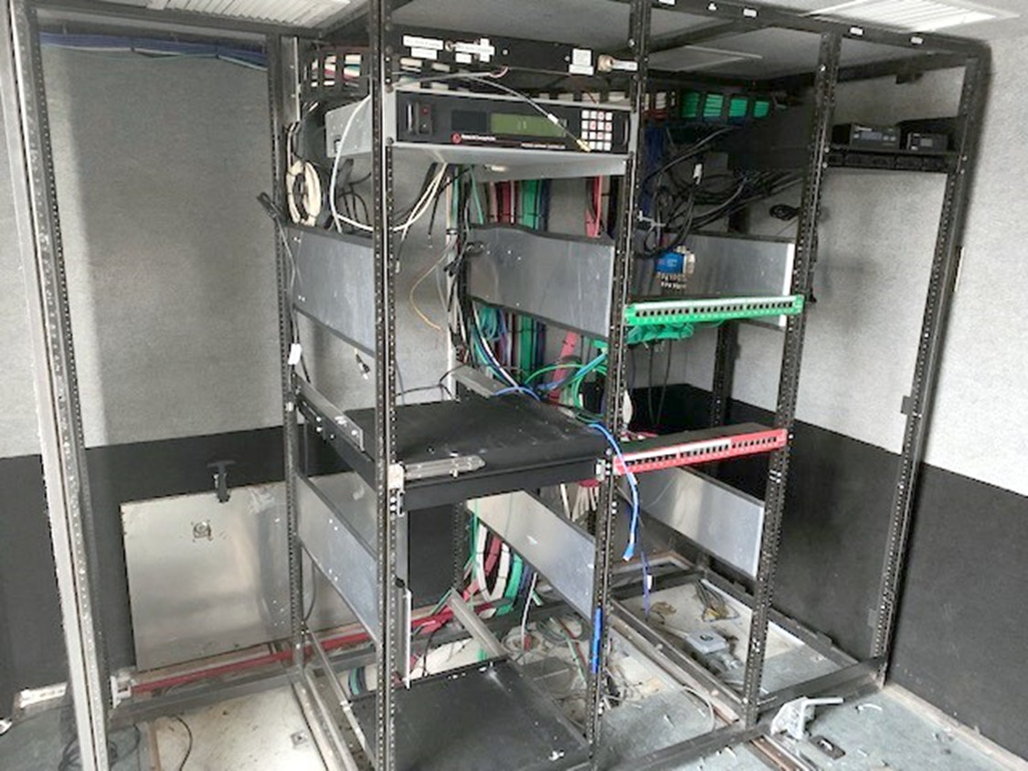 The pictures available show that the vehicle does have an office-like interior with equipment racks, as well as the aforementioned desks, still in place. There is various wiring that one imagines was previously connected to an array of computers, modems, radios, and other equipment.