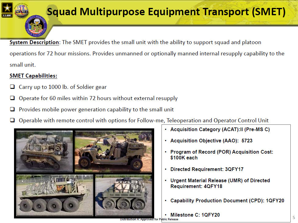 The relatively small 6×6 vehicle, which weighs around 3,600 pounds, is a modular design capable of carrying various payloads weighing up to 2,200 pounds. It has a hybrid-electric propulsion system that allows it to travel as far as 200 miles or otherwise operate for up to 120 hours on a single tank of gas – either JP-8 jet fuel or diesel. Range-extending fuel tanks are available.
