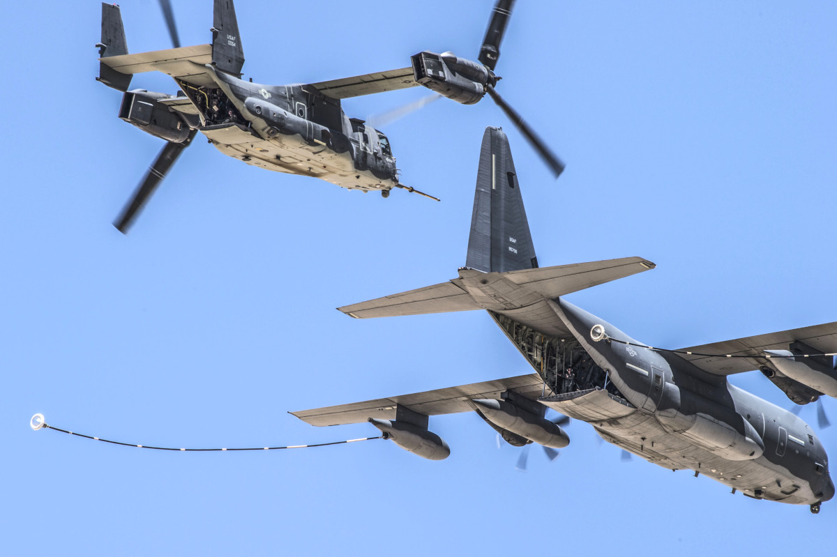 These tilt-rotors are capable of high-speed flight over extended distances, and can do so while operating at very low levels to help enter and exit sensitive areas discreetly and avoid potential threats or other hazards in the process. MC-130Js, which are specially configured for low-level flight, as well, are among the aircraft AFSOC has available to refuel CV-22Bs and helicopters in flight to further extend their range. Both aircraft are also equipped with the most capable self-defense, situational awareness, and secure communications of any aircraft with the airlift mission set.