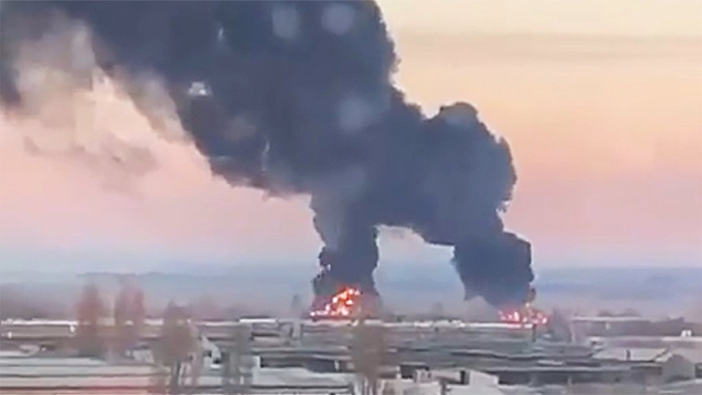 Incredible footage of a cruise missile strike on Ivano-Frankivsk Air Base in western Ukraine: