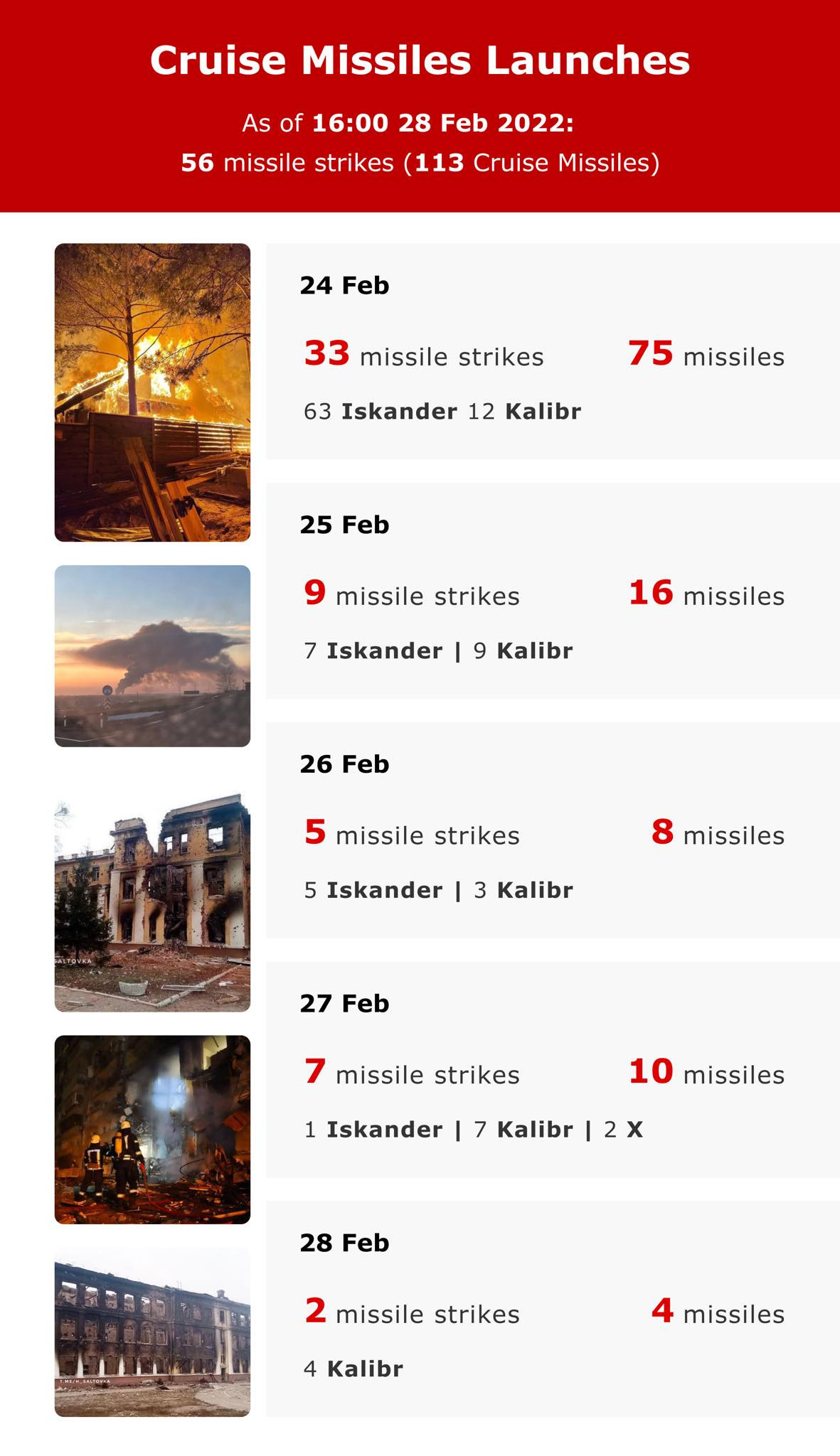 The Ukrainian Armed Forces has issued an official tally, along with the infographic seen below, of how many Russian Iskander-M ballistic and Kalibr cruise missiles they say have struck targets in the country so far. The total figure is lower than what the U.S. military has assessed to be the case, so far, with American officials saying earlier today that the Russian military has fired more than 380 missiles at targets in Ukraine since the conflict began.