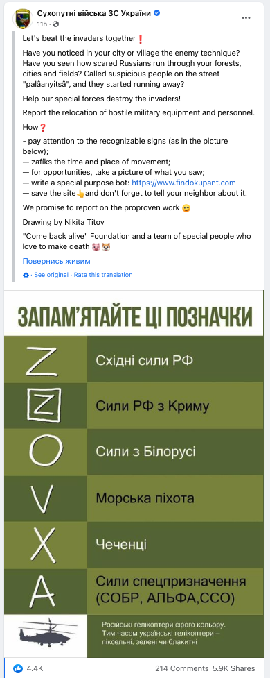 The Ukrainian Armed Forces has posted details on social media about the likely meanings of different temporarily applied markings that have been seen on various invading Russian vehicles, as you can read more about here. A separate infographic shows how to tell the difference between Russian and Ukrainian military helicopters.