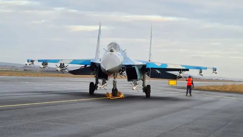 Video of the Su-27 departing Romania was posted to social media today, showing the pilot dipping the jet’s wings in salute immediately after taking off.