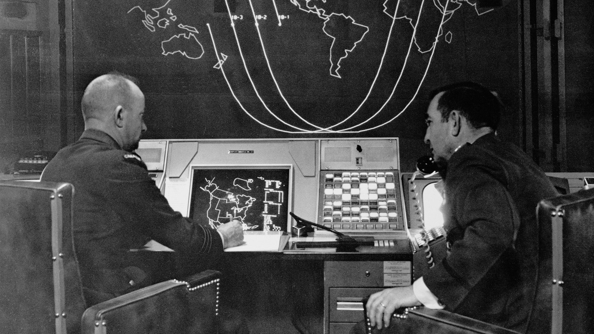 Space Tracks Underground. Colorado Springs, Colorado: There’s something new under the ground at Colorado Springs. The North American Air Defense Command’s Battle Staff inside Cheyenne Mountain there, can now see the routes space satellites will take in the future as they circle the globe. The NORAD Space Defense Center, also in the underground complex, has long had the capability to predict future positions of satellites. Center technicians and NORAD computer programmers have come up with a way to put those forecasts on the display screen in the Combat Operations Center. The result is that the battle staff can see the paths a satellite will follow for as many as 12 revolutions in the future. (Bettman/Contributor/Getty Images)