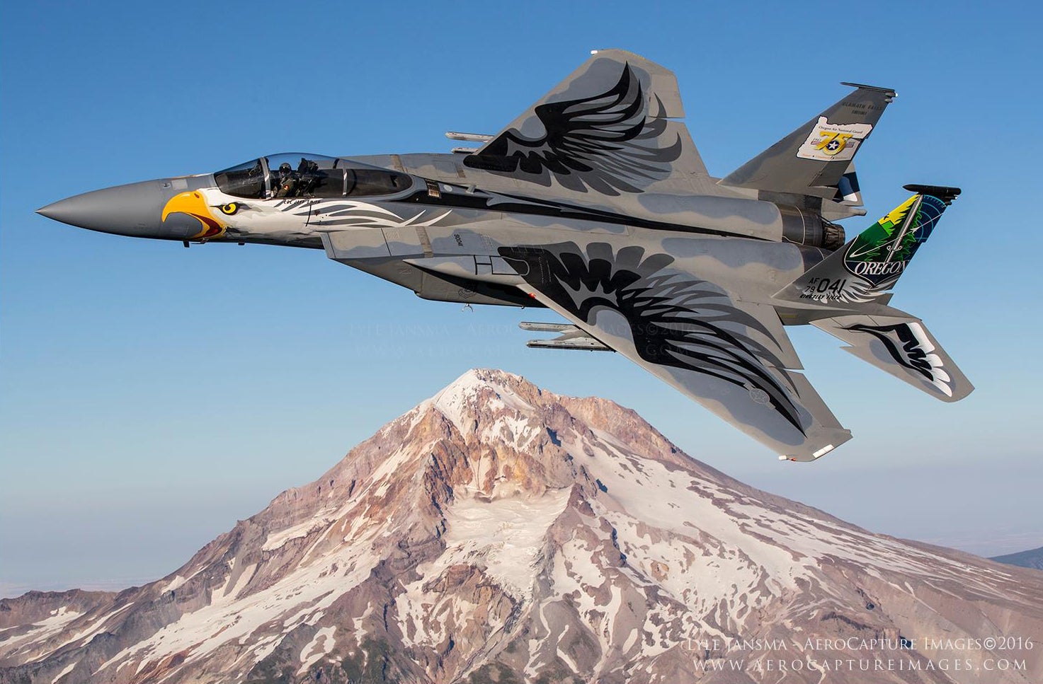 In typical Jansma fashion, Lyle framed the Eagle and its wingmen perfectly against Oregon’s iconic Mt Hood.