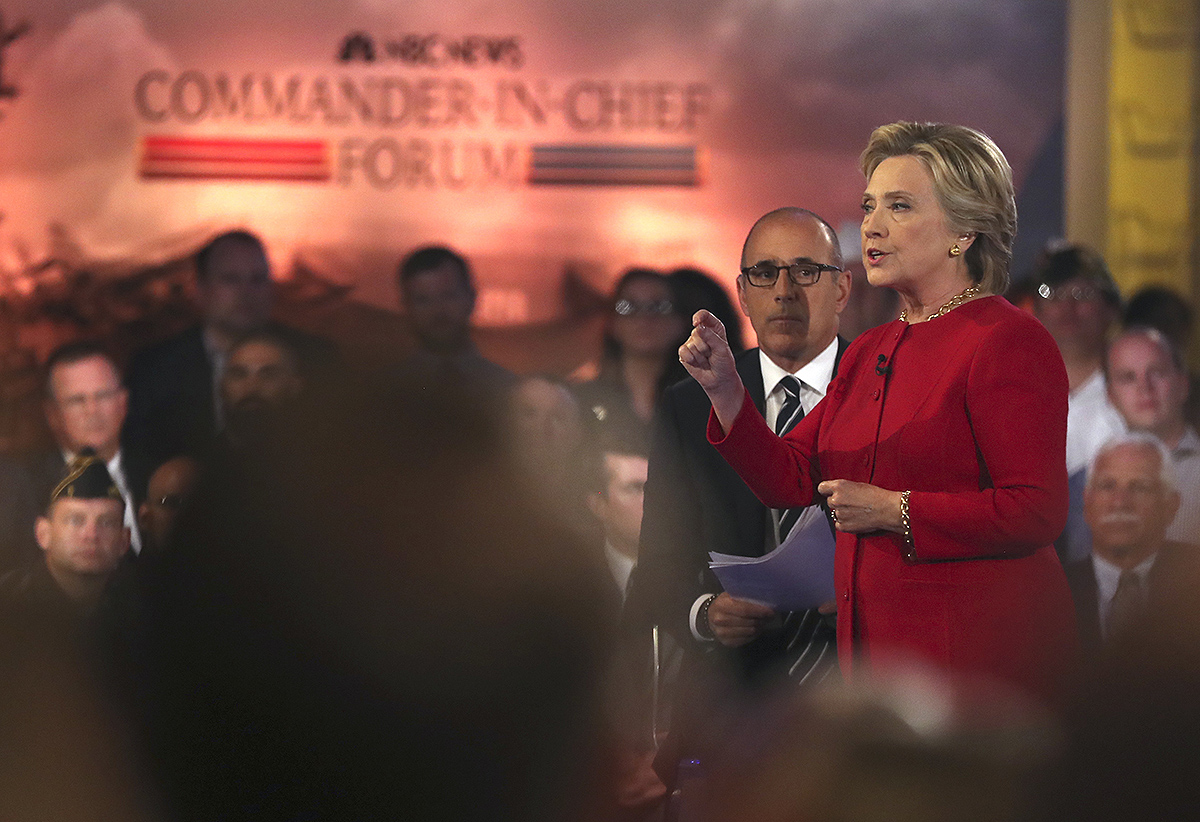 LAUER: Obviously, it was not something you said you would do again. I asked before for people to raise their hand if you served in Iraq. Can you do it again? How do you think these people feel when the person running to be their commander-in-chief says her vote to go to war in Iraq was a mistake?