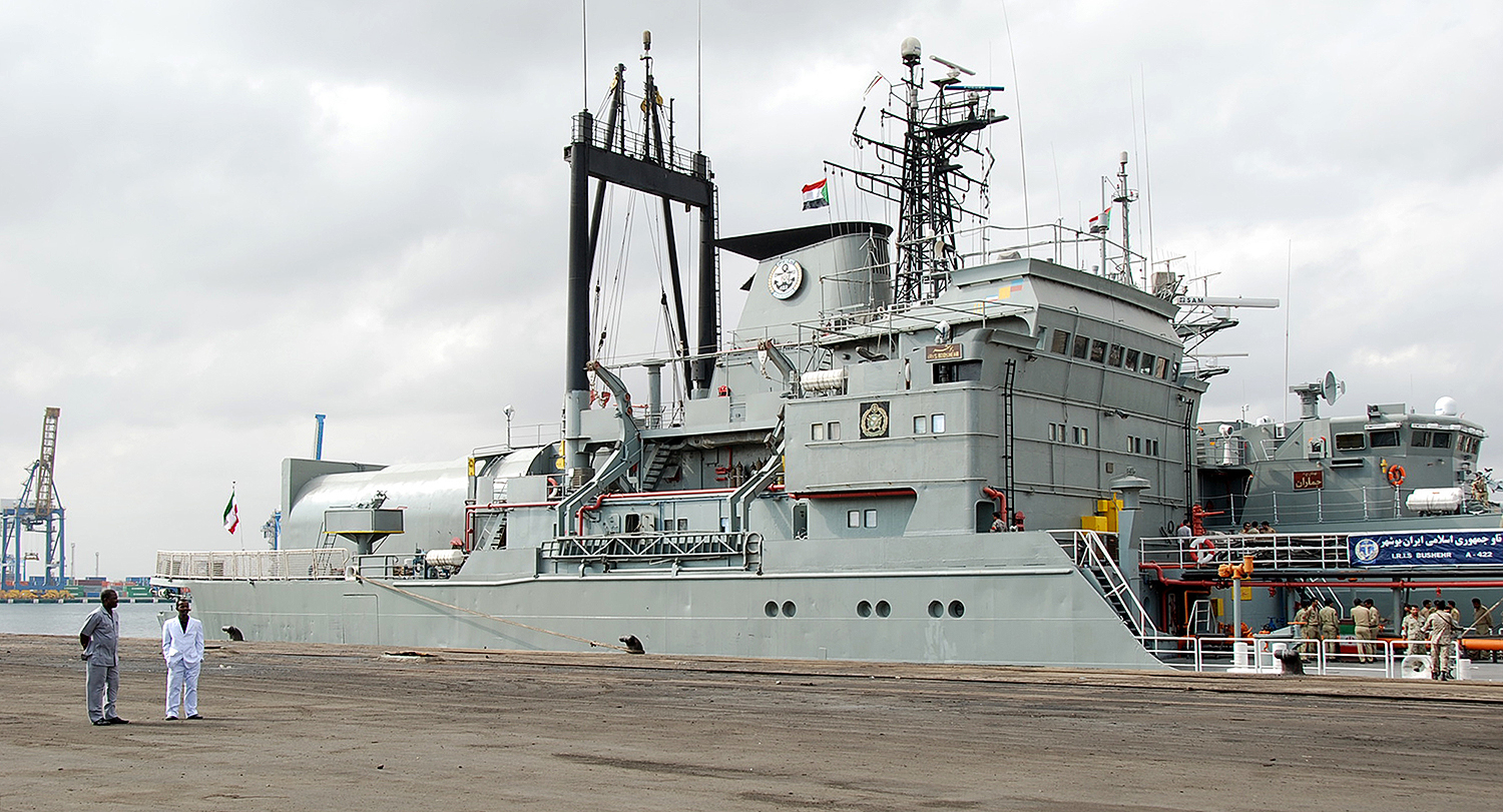 Bushehr is a 4,500 ton displacement Bandar Abbas class supply ship. She was also built 45 years ago in Germany and only carries minimal defensive armament, although it seems as if the ship is used for patrols as well as resupplying Iranian surface combatants and conveying cargo. A helicopter hangar enclosure can be seen on the ship’s flight deck, and it appears to be capable of housing a single helicopter.