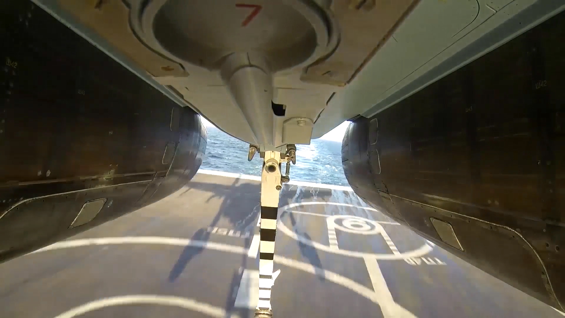 The most recent crash was the result of one of the carrier’s cross-deck pendants—also known as a wire—snapping right after an Su-33’s tailhook caught it upon touchdown. With the wire partially slowing the aircraft before snapping, the Su-33 did not have enough energy to bolter, and return to the air. Deprived of airspeed, the jet plummeted into the sea. Thankfully the pilot was able to eject and was subsequently picked up alive by one of the ship’s helicopters.