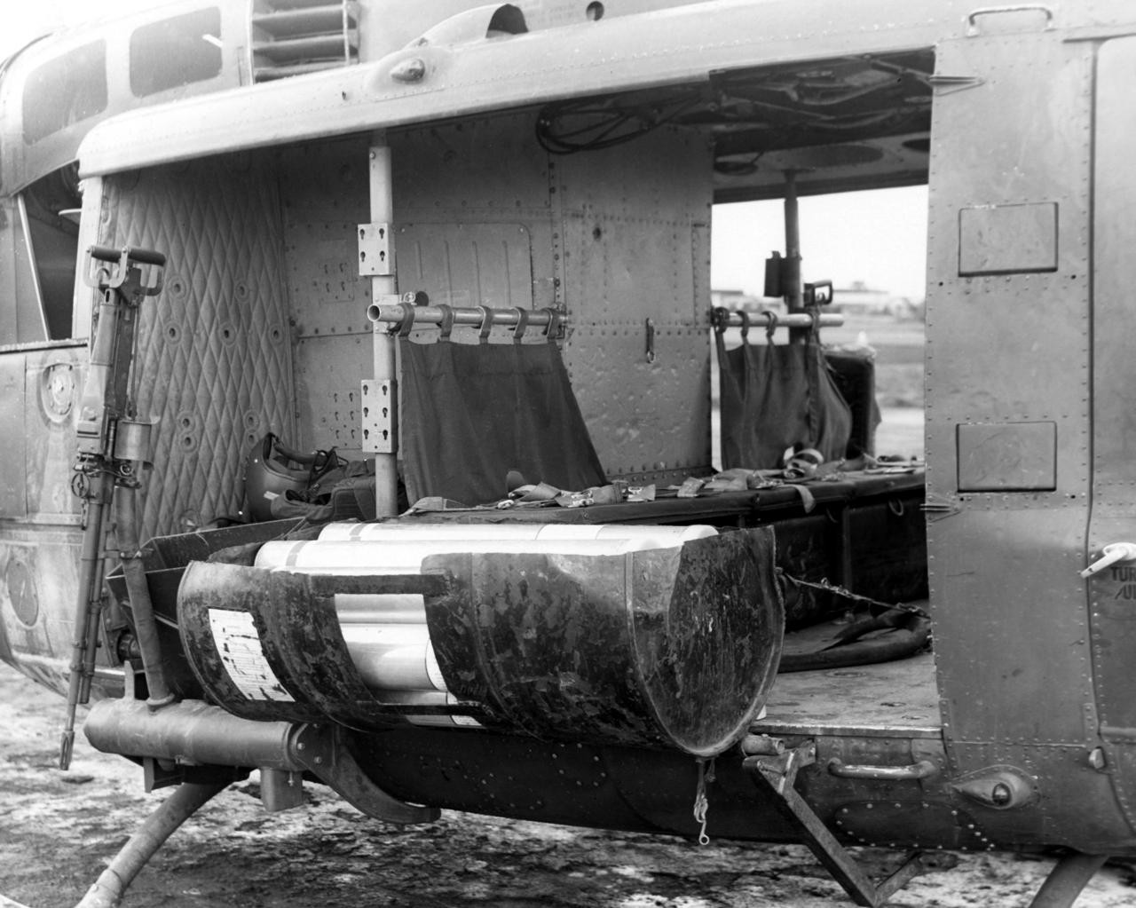 To say the system was simple would be generous. The original setup devised by troops from the 173rd Airborne Brigade and 145th Aviation Battalion was little more than an open-topped wooden chute mounted in the main cabin of either short-fuselage UH-1B/C gunships or the longer UH-1D/H transports. The entire assembly held 20 modified 81mm high explosive mortar rounds.