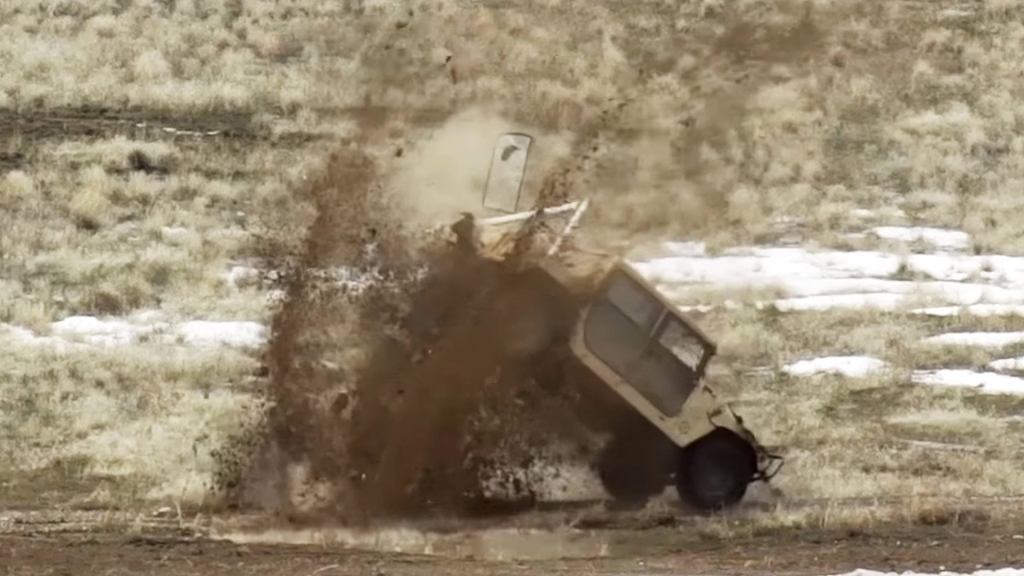 The idea behind all this is to make training as realistic as possible. Since A-10s are often tasked with taking out moving targets, hitting derelict tank hulks just doesn’t always do the trick. That’s where adapting surplus vehicles into remote controlled targets comes into play. Because inert ordnance is used—in this case laser-guided 500lb GBU-12 bombs—a single remote controlled vehicle can be used over and over, just like their full scale aerial target cousins. If the bomb drops land within a certain number of feet of the target it is still considered a kill because the blast of the GBU-12 would disable or destroy the target if the bomb were live instead of filled with concrete. As for the A-10’s 30mm GAU-8 Avenger cannon—well nothing lasts long against it.