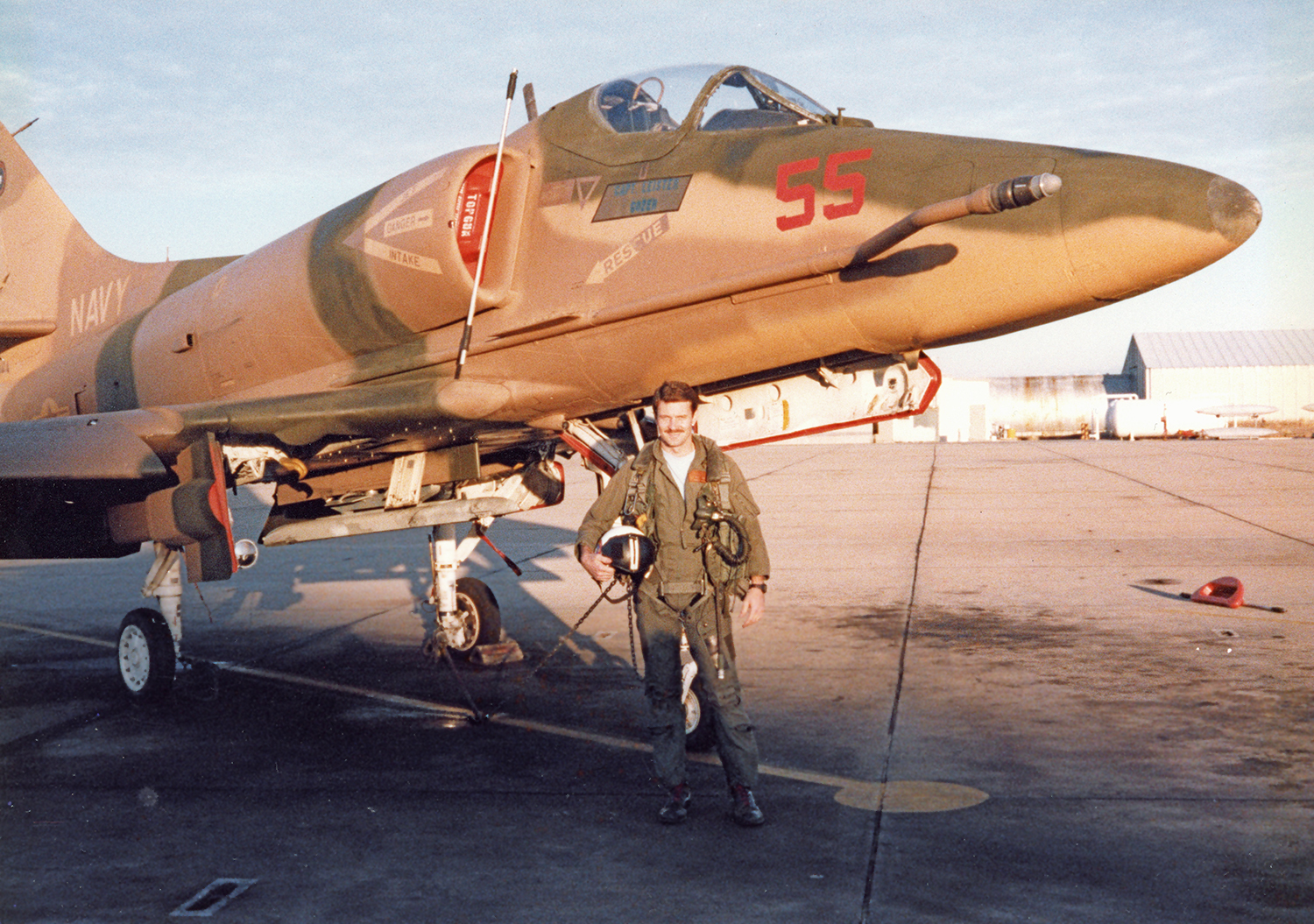 That evening at the Staff Meeting (STAFFEX), with no advance notice, I was asked to tell the story. Being the new guy, it was very intimidating, but the other instructors asked questions and were genuinely interested in the details. No one gave me a hard time. The biggest lesson that I learned and used the rest of my time in the Navy was that in a situation where you run out of airspeed while nose high, don’t quit and let the aircraft do what it’s going to do. The nose has to come down, but you’ve got to control the rate. If it’s developing a high pitch or yaw rate while coming down, counter it with stick or rudder so that it doesn’t go right through the vertical and back up toward the horizon with no airspeed. That worked well for me both in the A-4 and F-5 on a number occasions. No longer would I sit back and let it do its thing.
