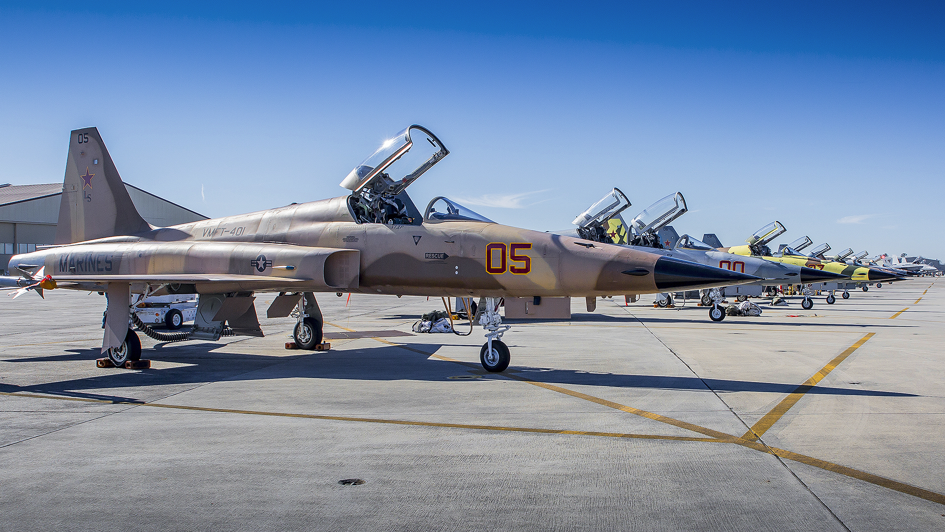 “The F-5 fleet is funded for life limited components of upper cockpit longerons, wings, horizontal stabilator pairs, and vertical stabilators that will enable the F-5 to achieve its 8,000 hour life. This extends the Department of the Navy’s 44 F-5airframes to 2025 and at least 12 aircraft to approximately 2028 in support of fleet training… The current configuration of the F-5 meets all MAGTF requirements except for F-35 and F/A-18. Upgrades to provide improved beyond visual range situational awareness, as well as passive weapon systems are being studied. Advanced electronic attack capabilities will continue to be fielded… Current USMC inventory is 12 F-5s assigned to VMFT-401 at MCAS Yuma. Based on the low cost per flight hour and ease of maintenance of the F-5, plans to expand the adversary capacity and capability while improving accessibility are being sought.”