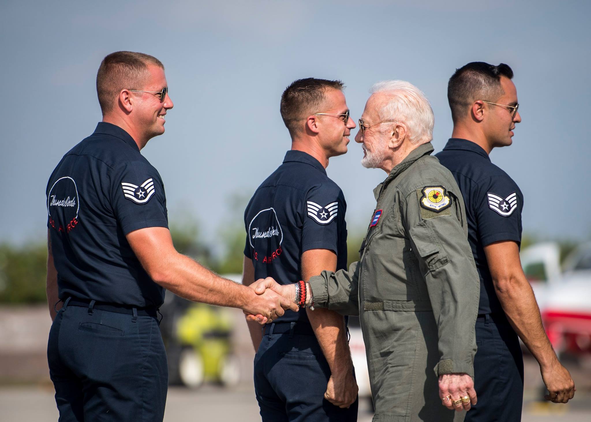At 87 years old, famed astronaut Buzz Aldrin is still breaking barriers and having a damn good time doing it. The USAF Thunderbirds invited the icon for a ride in their F-16D while they starred in the Melbourne Air & Space Show over the weekend. Aldrin now holds the record of being the oldest person to ever fly with the USAF Flight Demonstration Team.