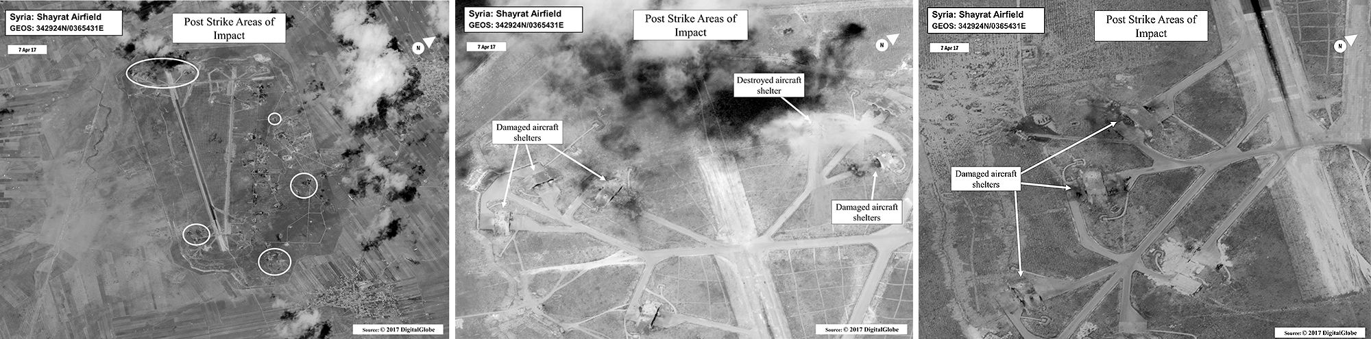 Unless you count old concrete as a weapon system or enemy, last night’s strikes did no substantial damage to Assad’s war fighting capability. A few hardened aircraft shelters were damaged, along with a handful of old tactical aircraft—their prior serviceability unknown—and some smaller buildings and miscellaneous material were harmed. The strike did not even take out the base’s runway or taxiways temporarily, meaning more missions can be flown from Shayrat in the near term. Even the base’s air defenses were left intact.