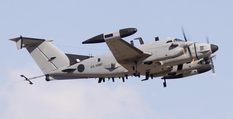 The RC-12X is a militarized twin-engine Beechcraft King Air light utility aircraft with a signals intelligence (SIGINT) setup that can find and listen in on enemy communications. The four-engine EO-5C, which uses the de Havilland Canada DHC-7 airframe, has similar capabilities, along with synthetic aperture radar and powerful day and night-capable video cameras. You can regularly spot the ARL-Ms flying along the DMZ, scanning for any activity on the other side of heavily guarded border.