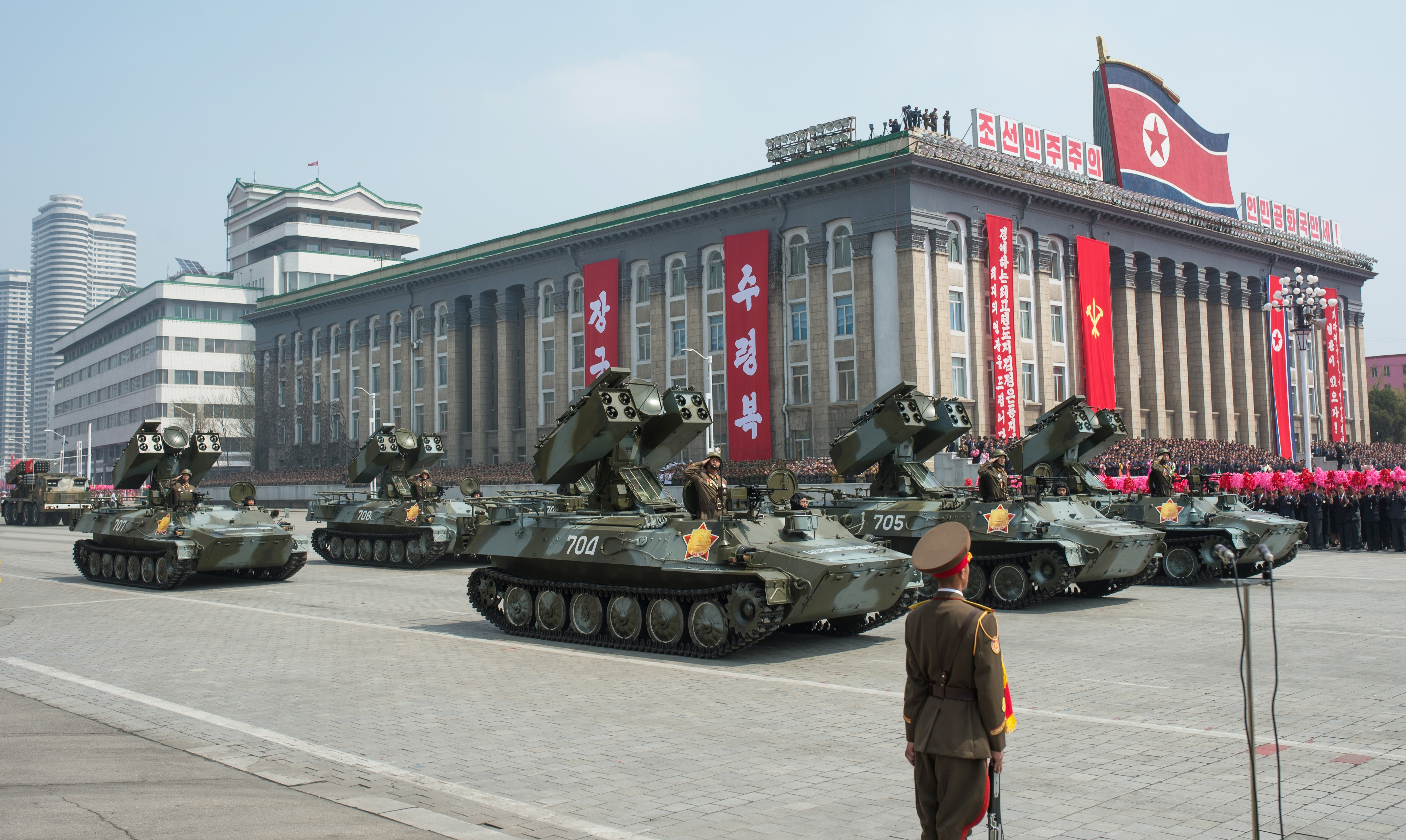 An unprecedented number eyes were focused on Pyongyang yesterday for this year’s Day of The Sun military parade. Largely this was because the rhetoric between the US and North Korea has never been so hot, and there has been real posturing to go along with it. Intelligence agencies and journalists alike watch the display closely to see what new military capabilities the Kim regime will put on display, and as a result you probably woke up to headlines like “North Korea shows off sinister new ICBM” and the like.
