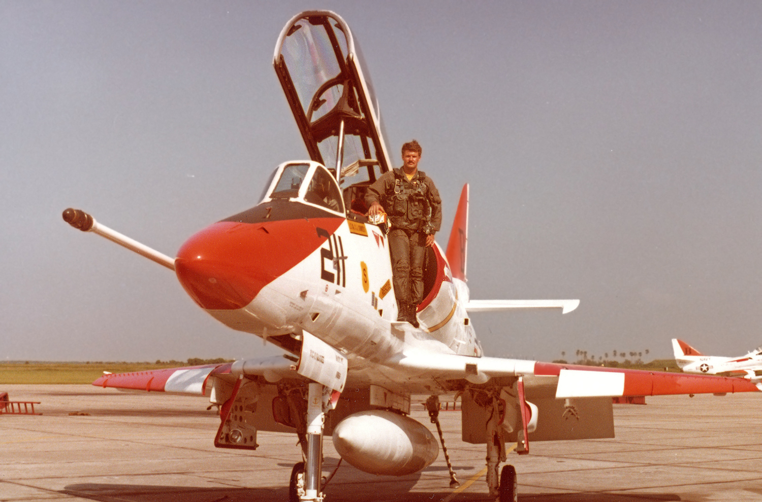 I joined the navy with no previous flight training. However, I had flown several times in small aircraft, including the T-34B on several occasions with Navy recruiters. For someone with no flying experience, Navy flight training is very difficult. Early on, you’re being exposed to so many new things that it is simply overwhelming. By the time I started advanced jet training in the TA-4J Skyhawk, things had changed. I knew how to fly, navigate, adhere to ATC procedures, and it was just a matter of learning a new jet. Also the syllabus started to focus on more tactical missions such as low level flying, bombing, strafing, and air combat maneuvering (ACM). It was just a taste of all the excitement to come.