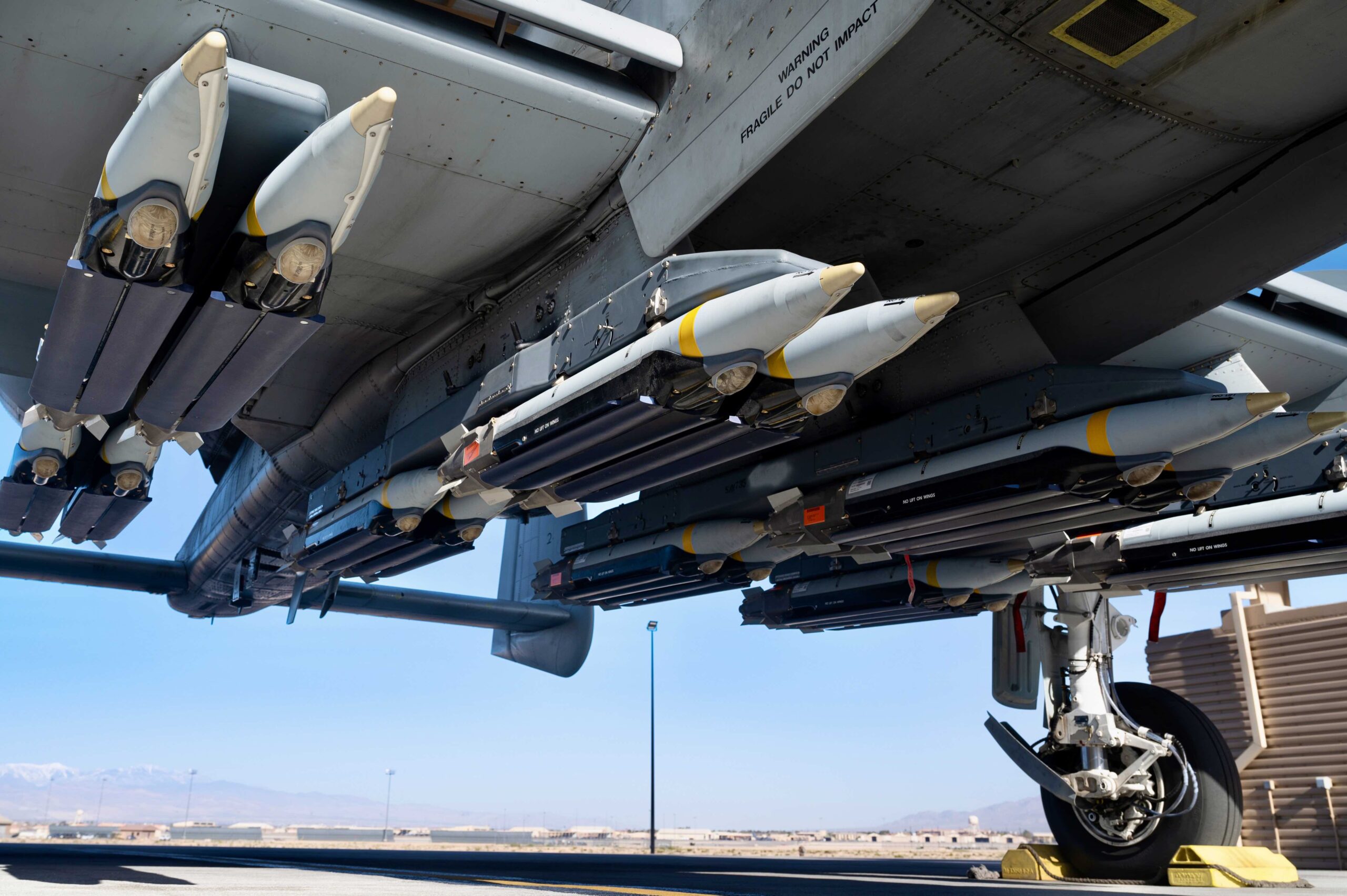 Photos released by the Department of Defense show the Warthog recently kitted out with different SDB configurations, including one with 16 SDBs and one with eight SDBs and a centerline fuel tank, at Nellis Air Force Base in Nevada. According to the image captions, the recent tests took place between April 19-20, and saw personnel attached to the 422nd Test and Evaluation Squadron (TES) assess an updated version of Operation Flight Program (OFP) 11 – software that controls aircraft avionics and enables the integration of weapons.