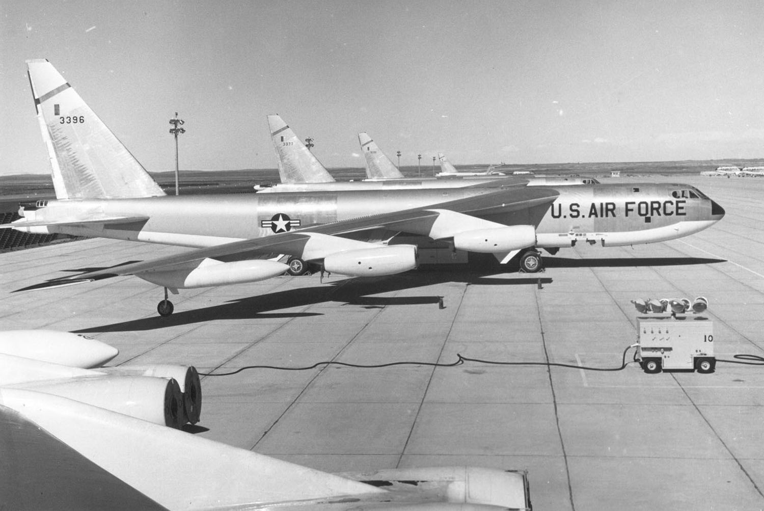 The first B-52H flew in July 1960 and deliveries began in May 1961, initially to the 379th Bombardment Wing at Wurtsmith Air Force Base, Michigan.